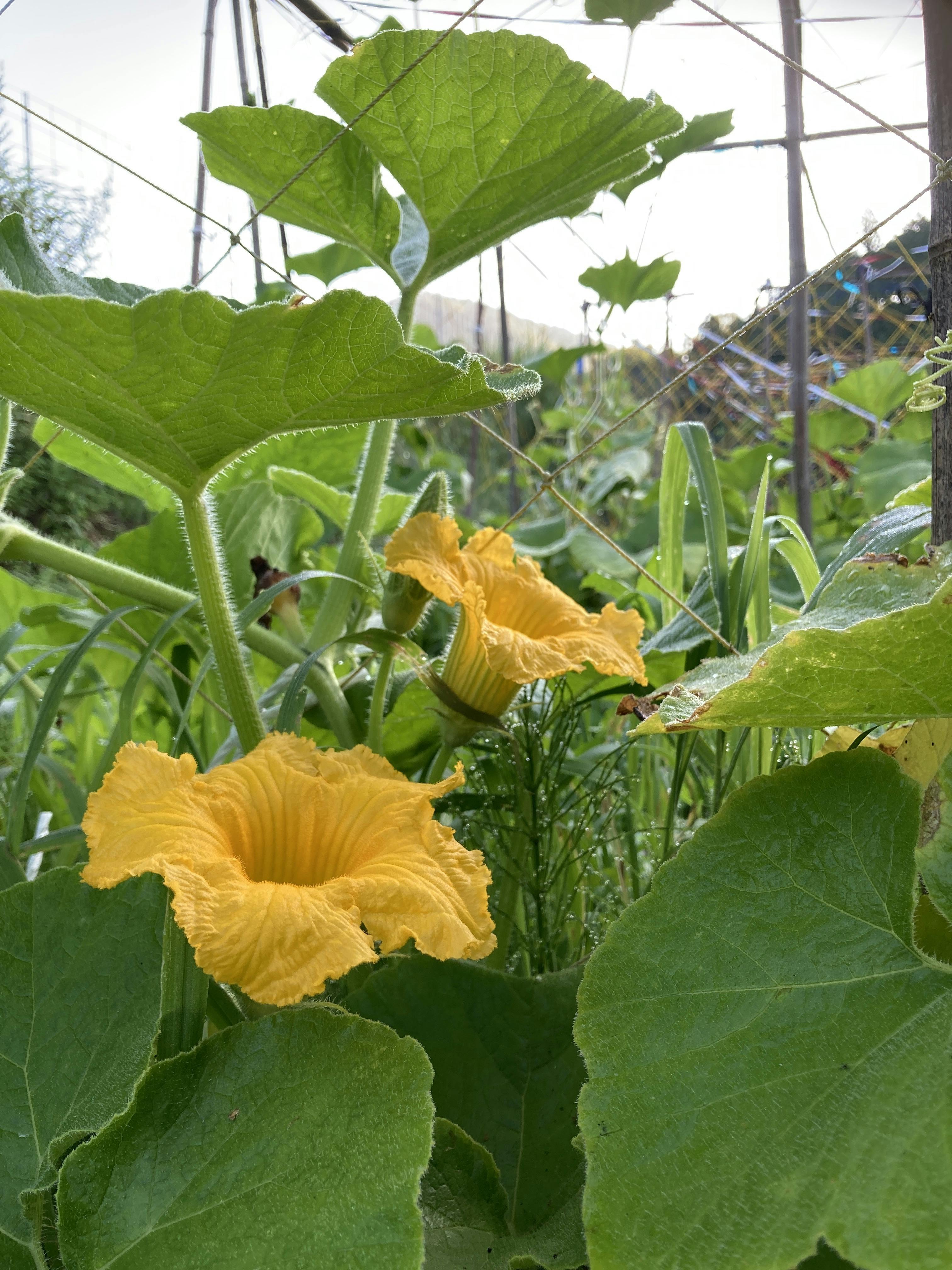 防虫ネットを張り、野菜を外敵から守ります。