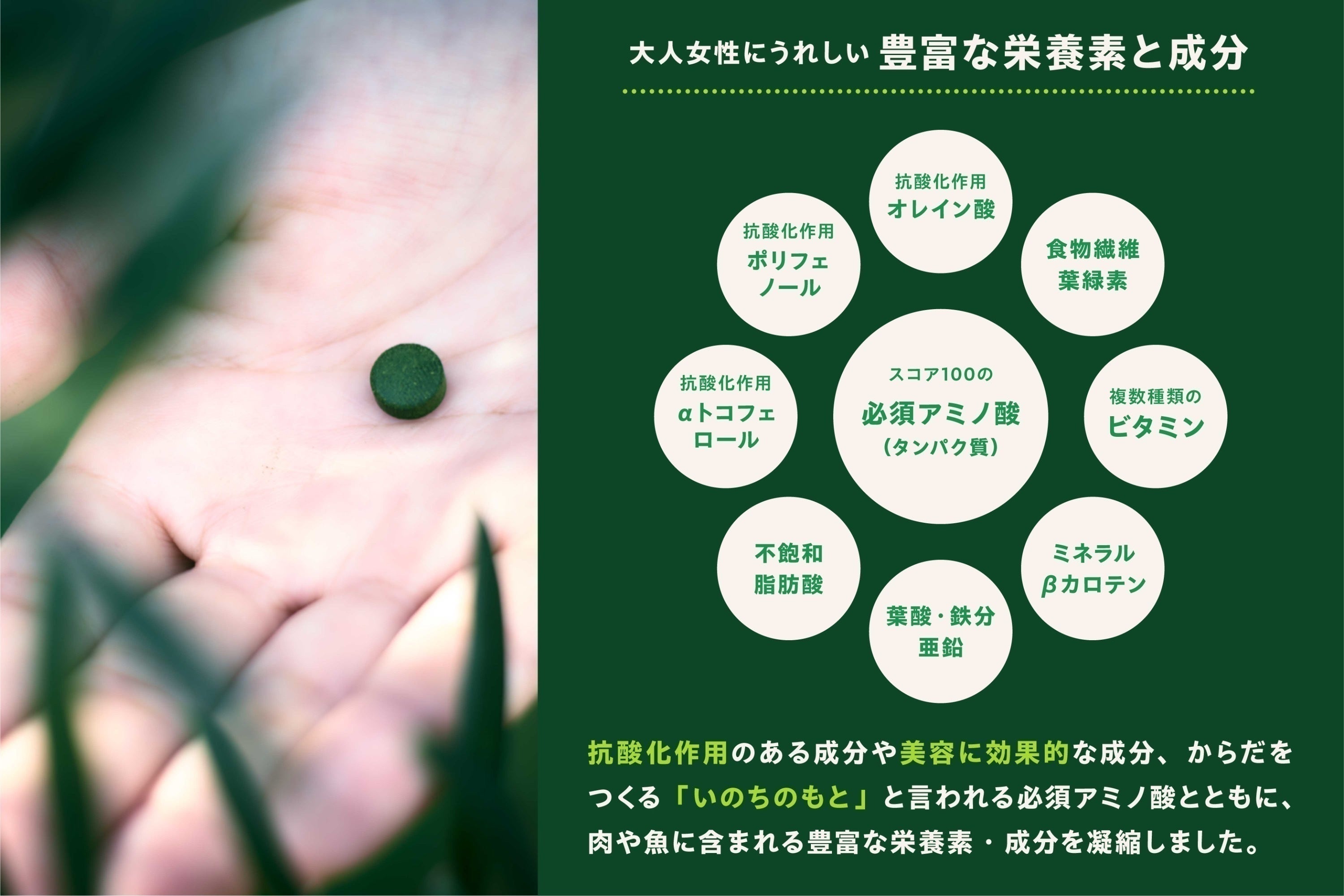 瑞々しい⾃然のちからで、内側から美しく。毎⽇をアクティブに過ごしたい、大人女性にオススメできるプレミアムなサプリメントです。