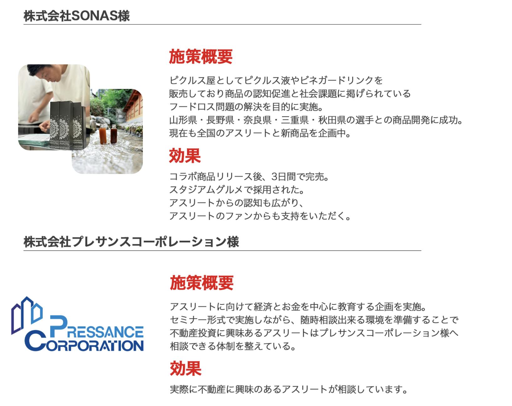 パートナー企業様には、以下の内容をもとにアスリートを活用した施策を