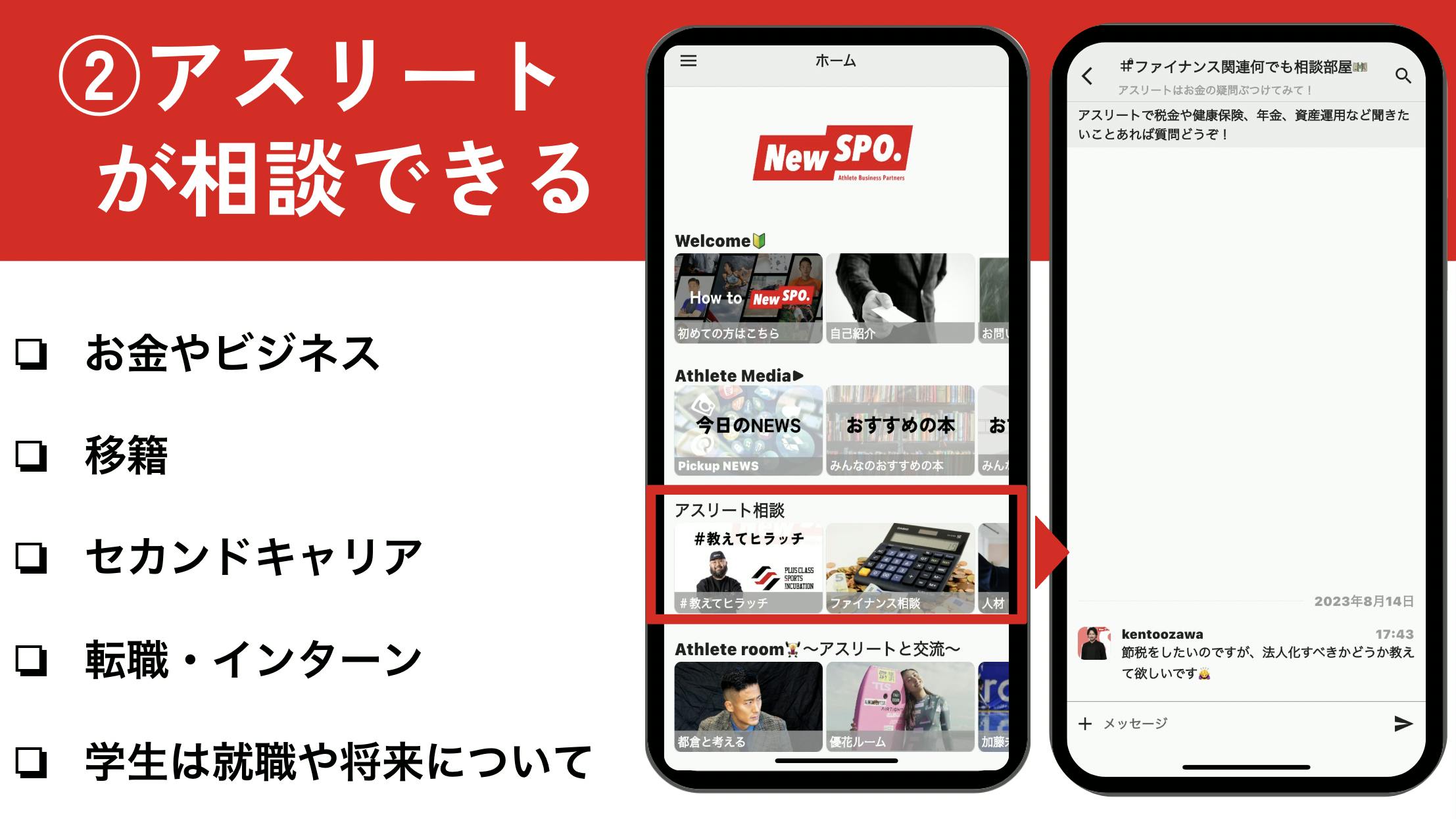 アスリートの特有の狭いコミュニティを、アプリ通して広くすることができます。