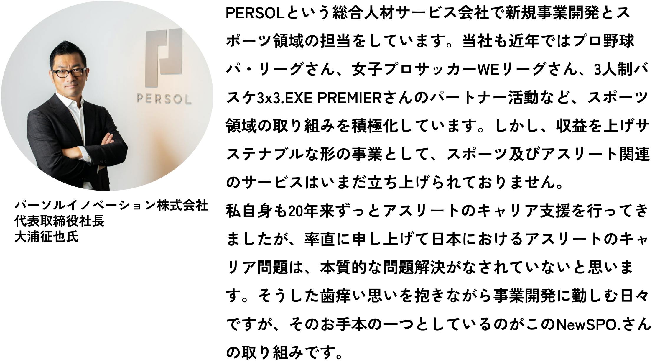 パーソルイノベーション株式会社 代表取締役社長 大浦征也氏 応援コメント