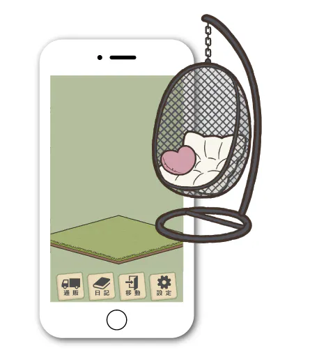 この図では部屋で隠れていますが、部屋移動のスワイプをするときに、背景を確認できますよ☆