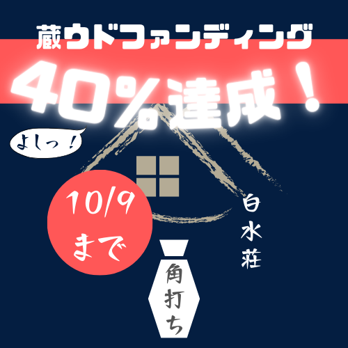 さて、昨日(9/12)付で白水荘プロジェクトは40%の達成となりました!