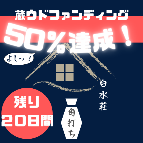 さて、本日(9/19)付で白水荘プロジェクトは50%の達成となりました!