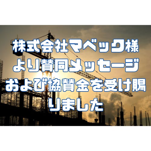 株式会社マベック様より賛同メッセージおよび協賛金を受け賜りましたので、以下にご紹介させていただきます。