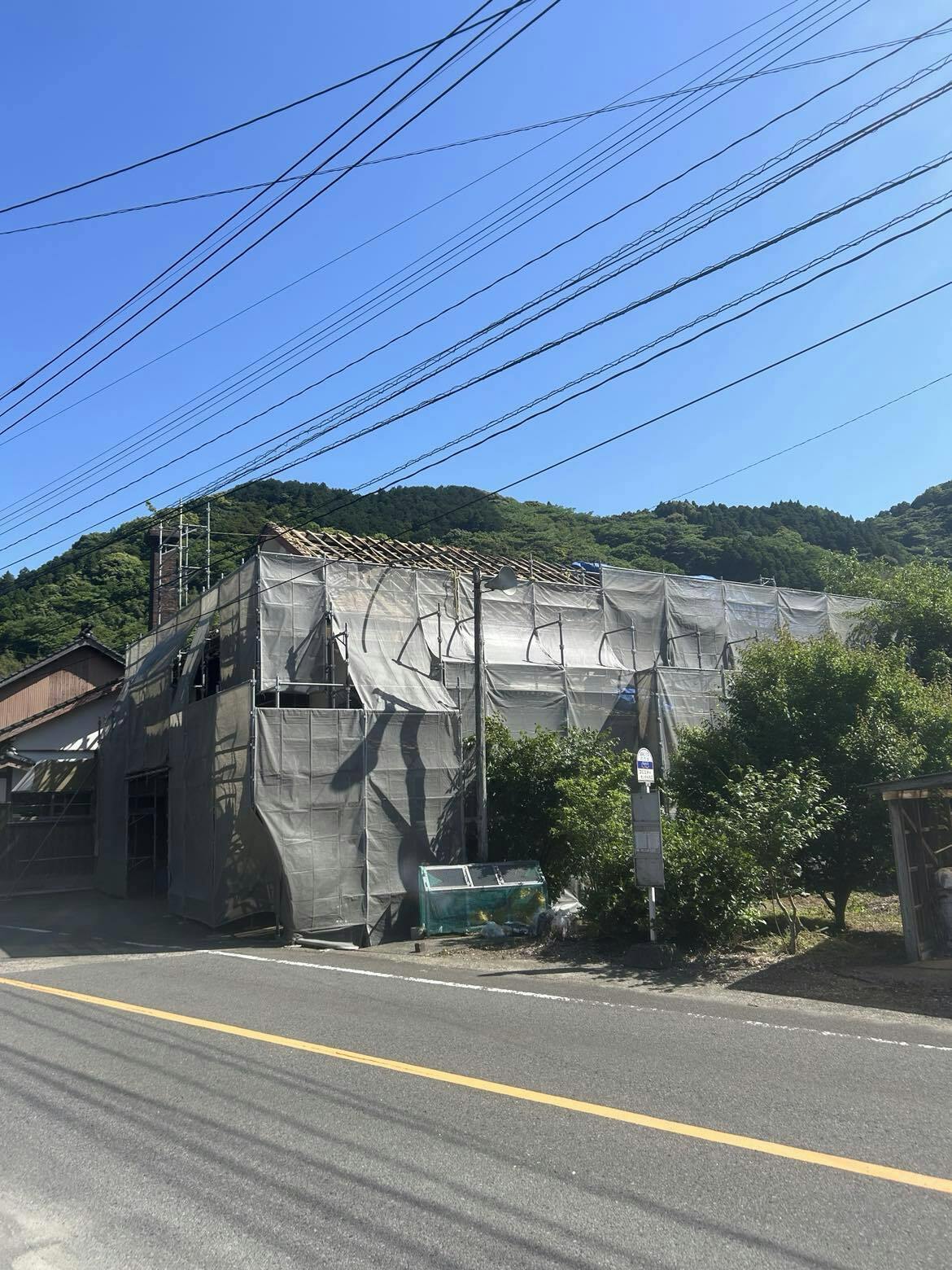 梅雨入りし、作業をすべて止めざるを得なくなる。ブルーシートでその間、雨から屋根と内装を徹底して守る。通算1か月程度、晴れ間を探しては断続的に作業に入るという状況。