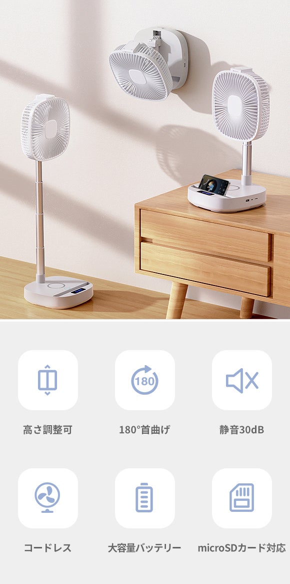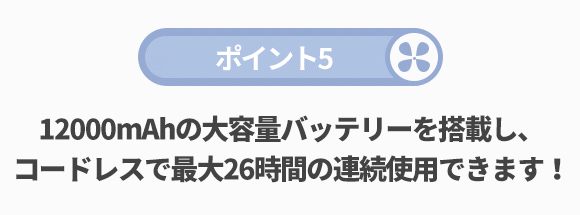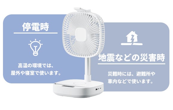 充電しながら送風することができるので、いつでも利用できます。