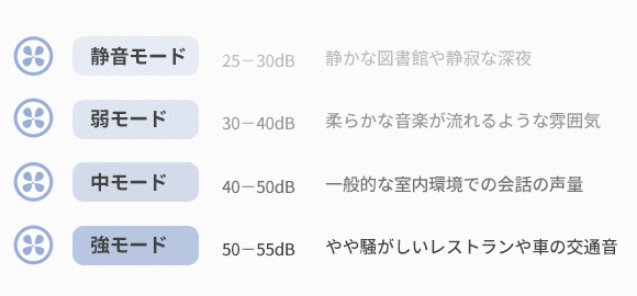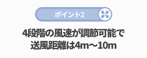 最大風速は10.0m/sであり、一般的なリビング用扇風機に劣らず、パワフルな風を生み出します。