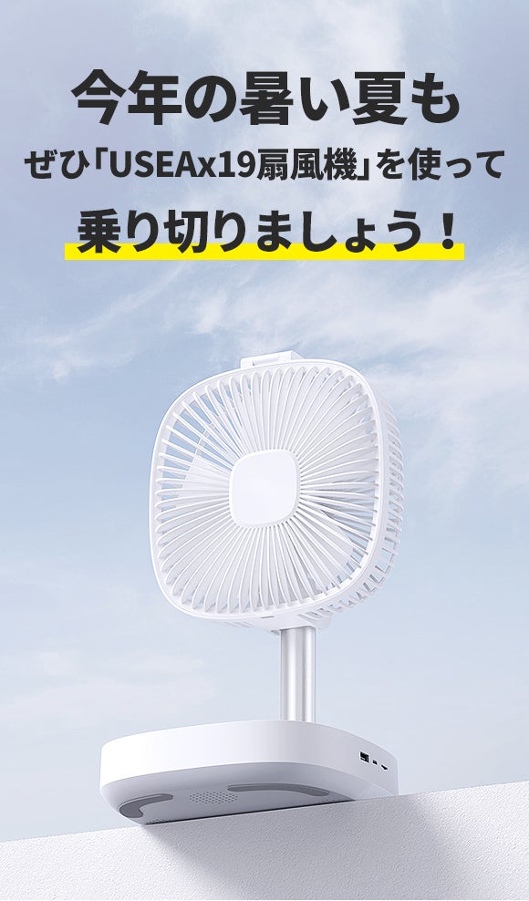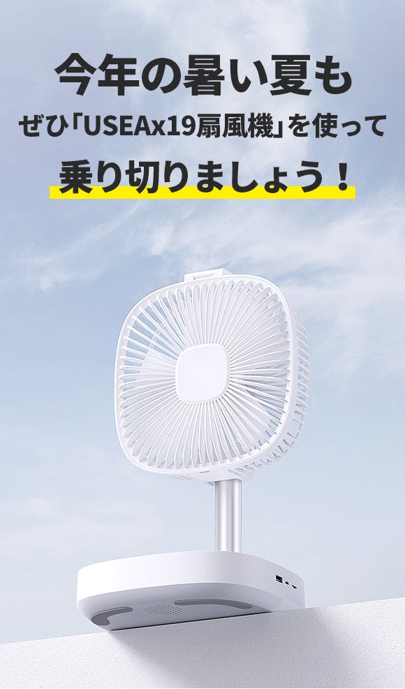 扇風機は現代では1人1台の時代になり、どこでも持ち運んで自由に使用できるようになりました。 そして、今回は多彩な機能を統合した扇風機「USEAx19」をGREENの皆様にご紹介いたします。この製品は子供でも簡単に持ち上げられる軽量さを備えており、持ち運びの自由さだけでなく、さまざまな機能を統合したことで使い勝手を最大限に向上させました。これにより、夏の暑い日やエアコンのないアウトドアでの使用において、快適さを追求できる製品です。