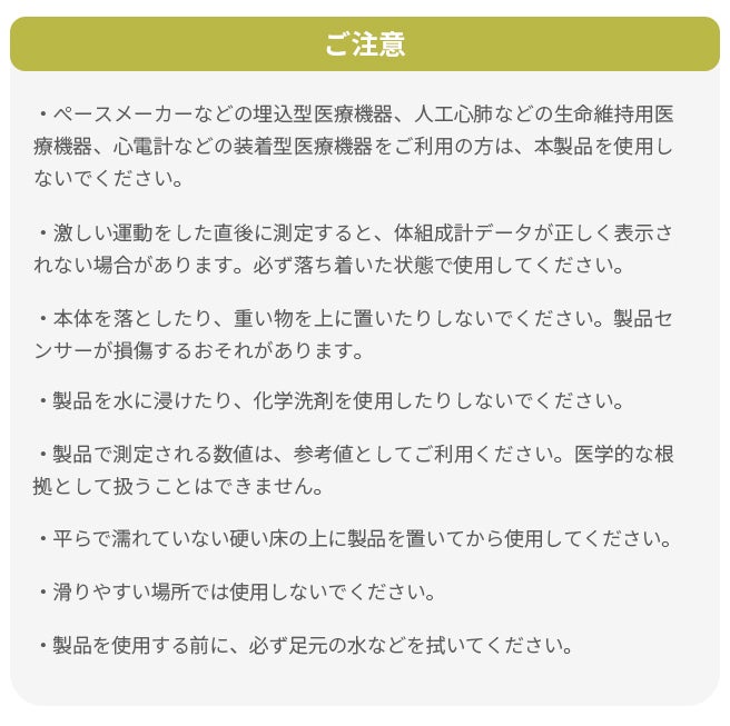 ※本製品は、体重や体組成を測定し、モニターするために作られたものであり、医療機器ではありません。