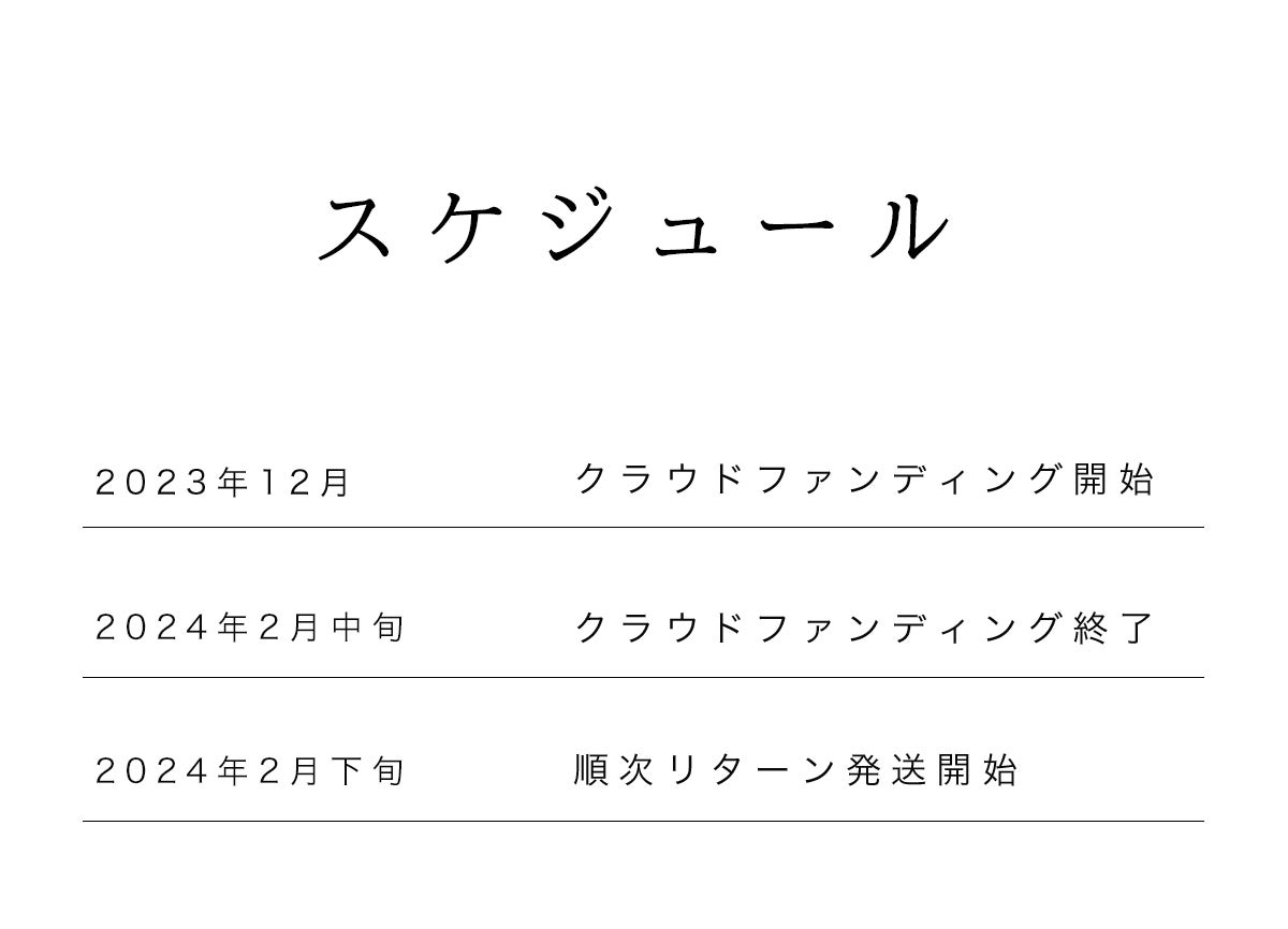 クラウドファンディングの終了後、2月下旬より順次発送させていただく予定です。