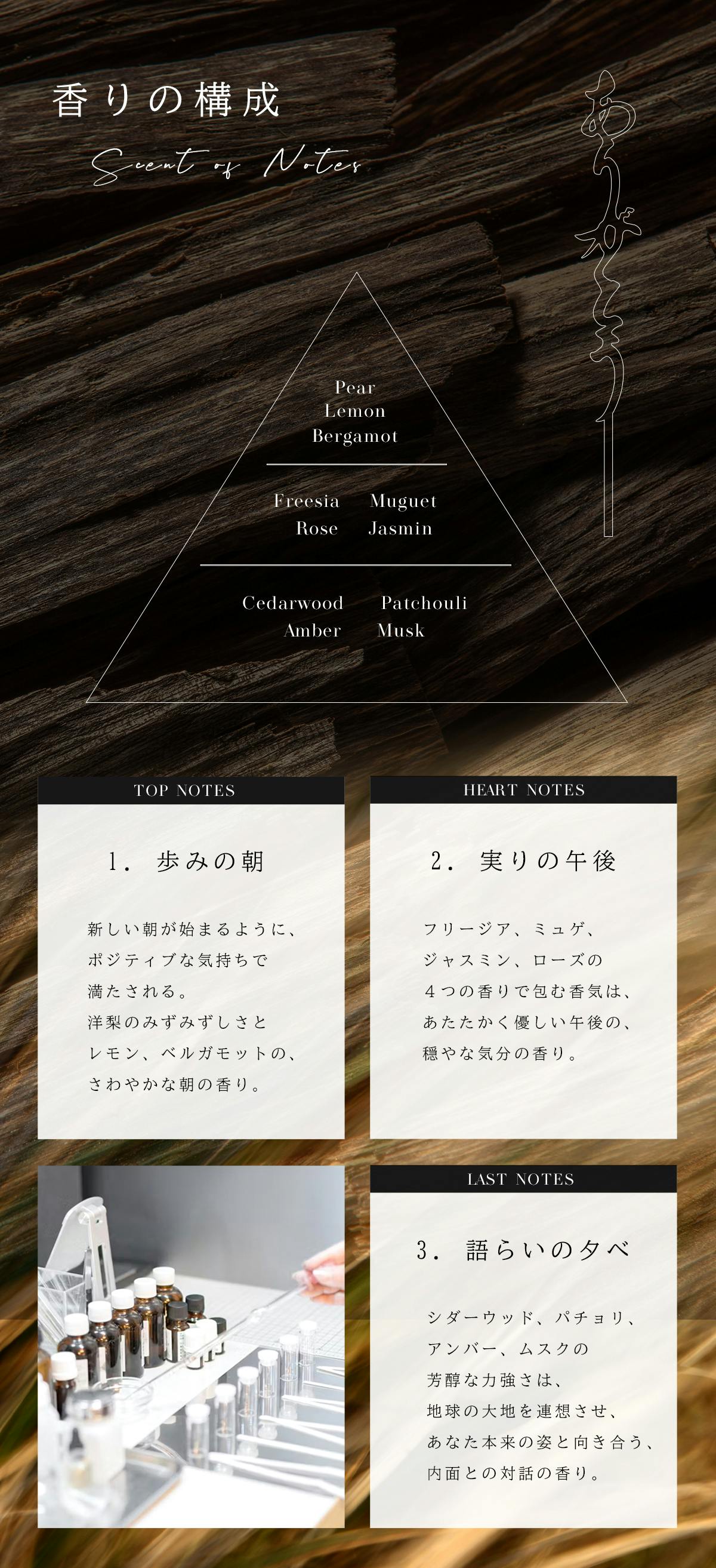 心が安らぐ香りをイメージし、天然香料・合成香料を当店オリジナルで配合致しております。香りのお好みは人それぞれになりますので、強い香りは使用致しておりません。どうぞご安心下さいませ。