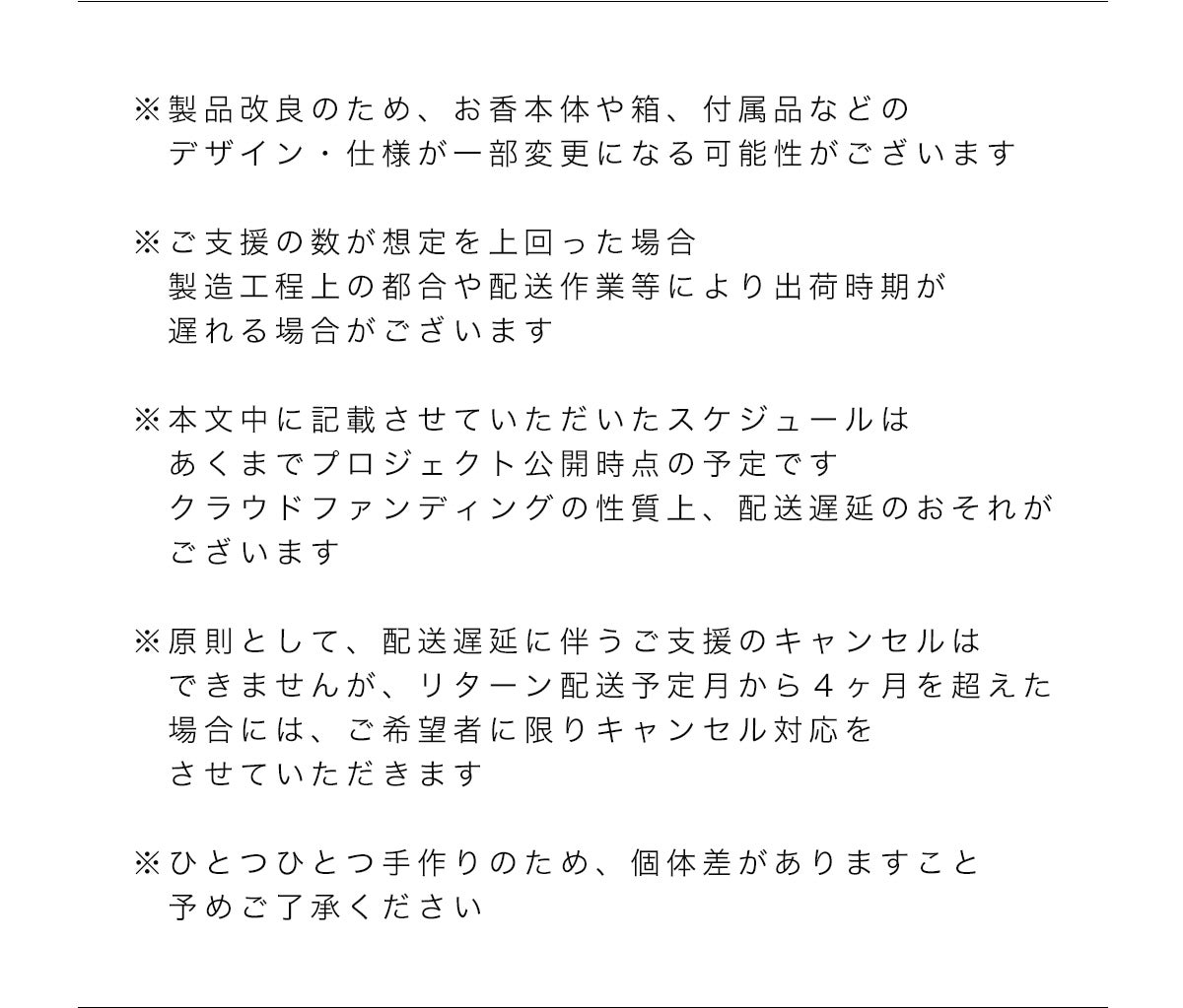 当プロジェクトは「All-in型」のため、お申込み完了をもって契約が成立いたします。その為、お客様都合による返品・キャンセルはできませんのでご注意ください。