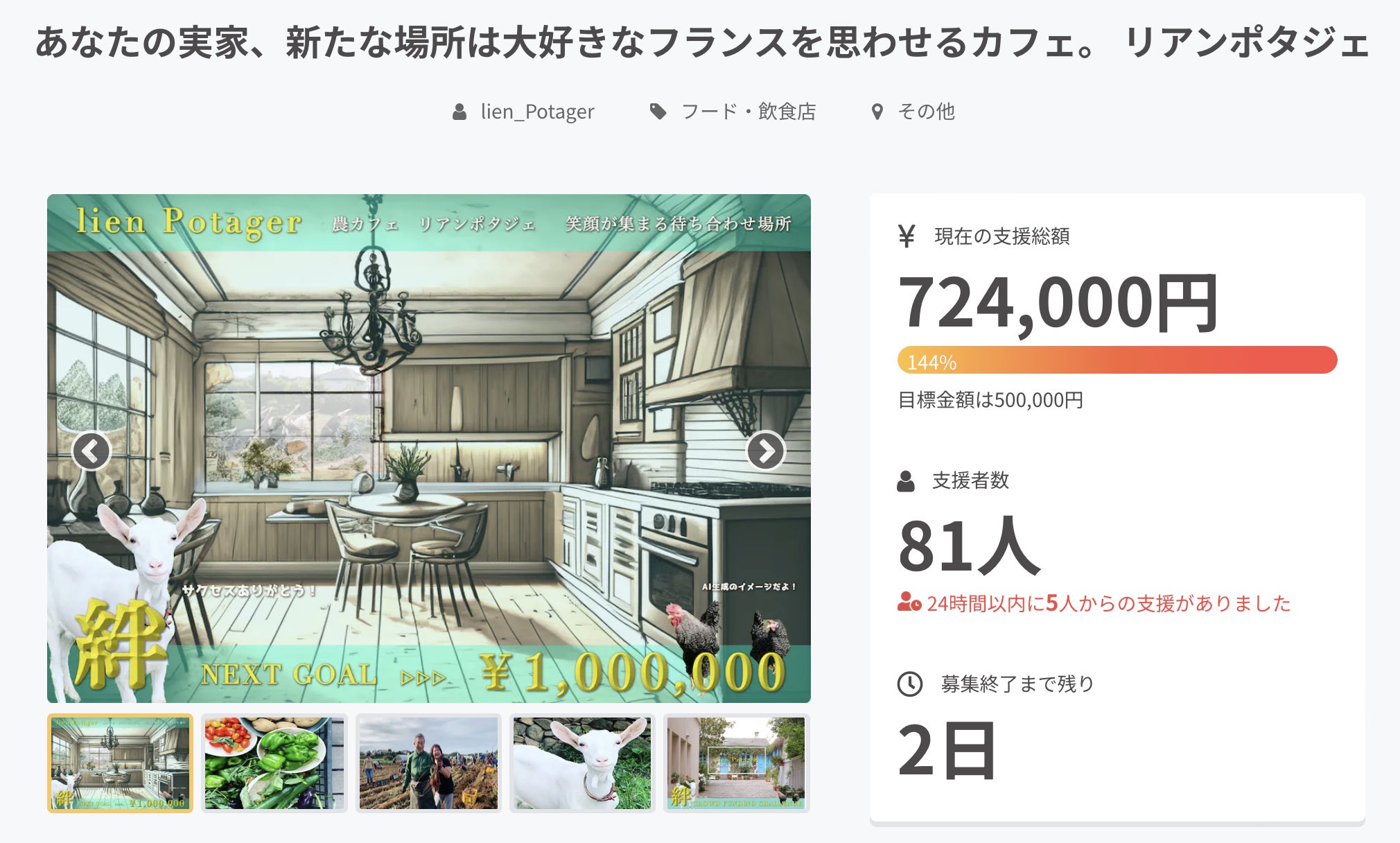30,000円 lienPotagerリアンポタジェを応援〜いつか行きます〜