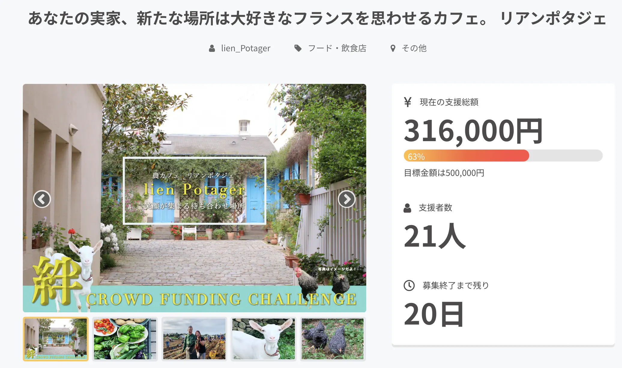 現在21名もの方にご支援いただいております。