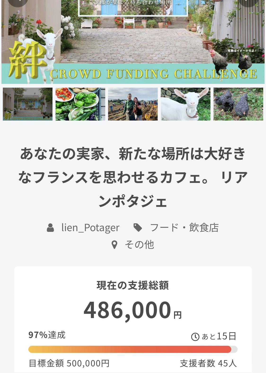 現在、45名の方にご支援いただいております。