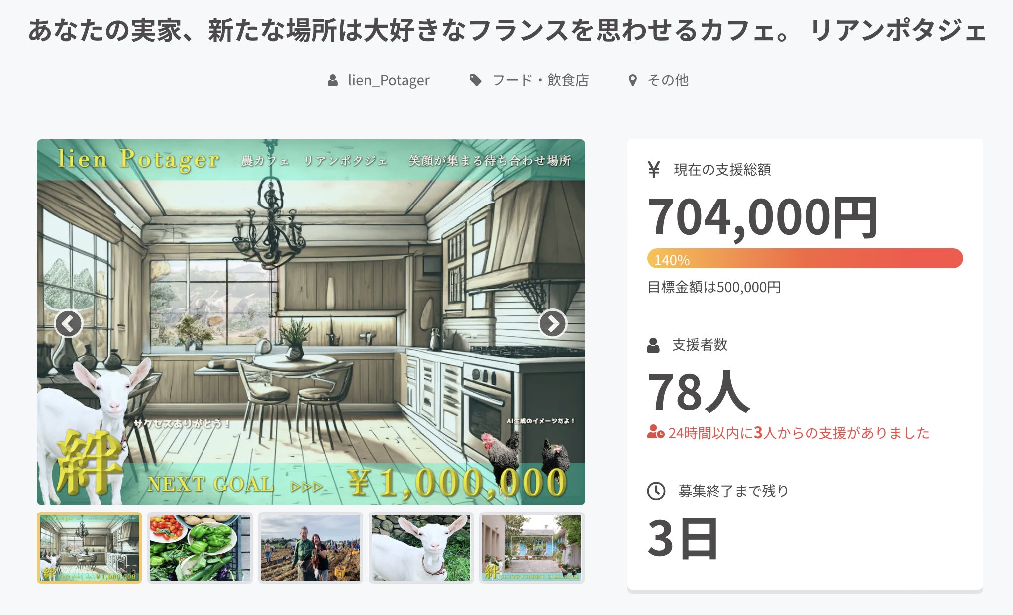 78名の方にご支援いただき