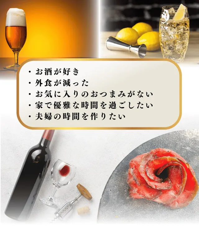 今回応援していただいたパートナー様には、休日に家で半熟干し肉とワインで『心を満たし、人生を彩る』時間を過ごしていただければと思っております。