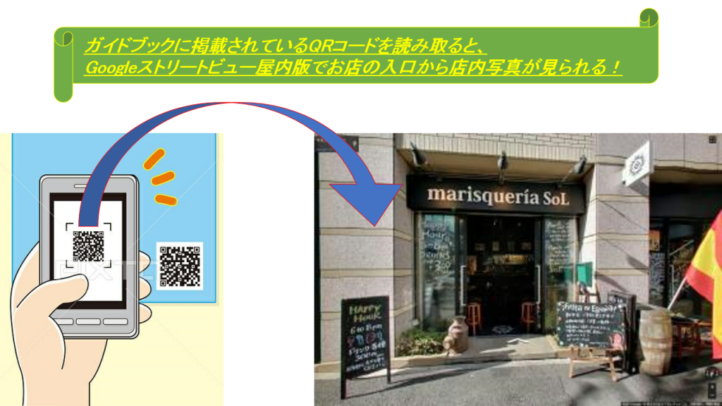仕組みとしては、紙媒体であればリンク先のQRコードとURLを表記します。また、アプリやホームページも作成する予定です。アプリやホームページにおいては、閲覧中の店舗写真の一つをGoogleストリートビュー屋内版と同じ写真を使い、その写真をタップまたはクリックするとGoogleストリートビュー屋内版へ移動するといった様にプログラムを作ります。