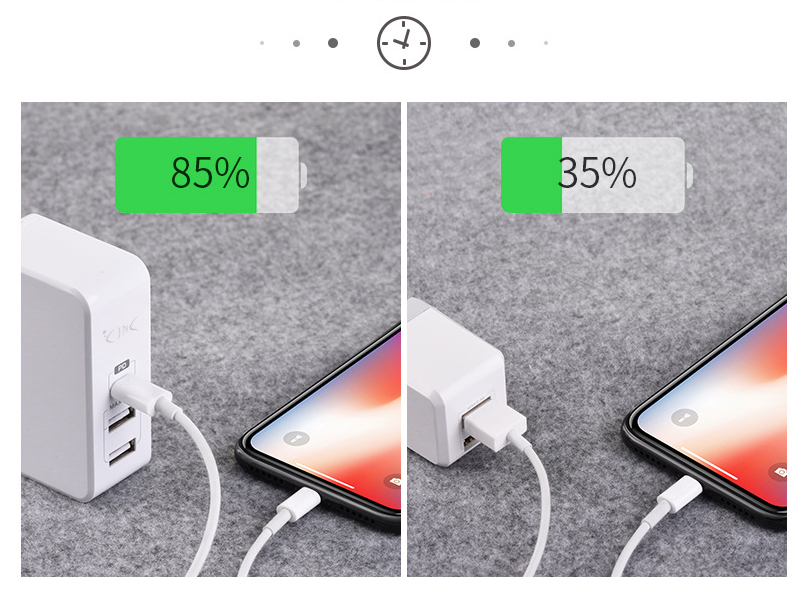 ※iPhoneXの充電では、通常のUSBが35%のところ、同時間でUSB-PDにて85%まで充電可能です。
