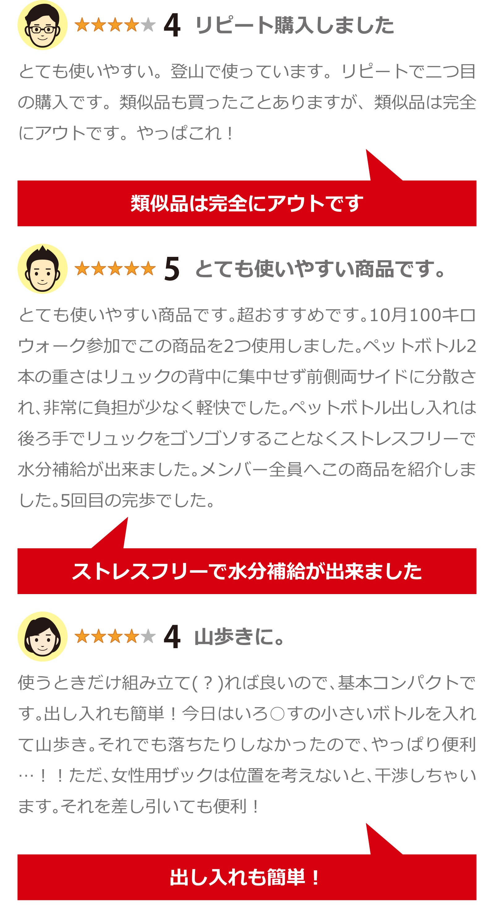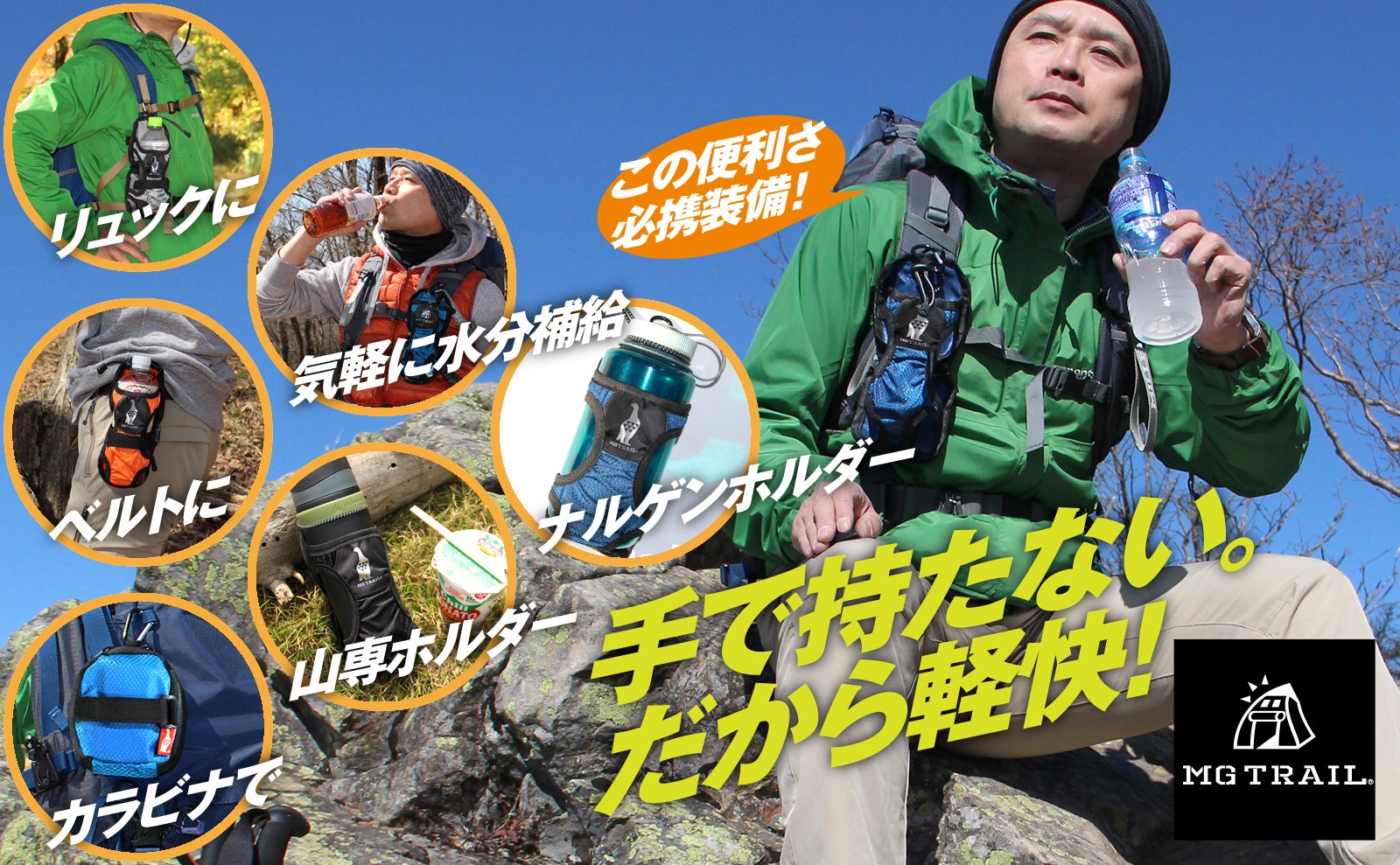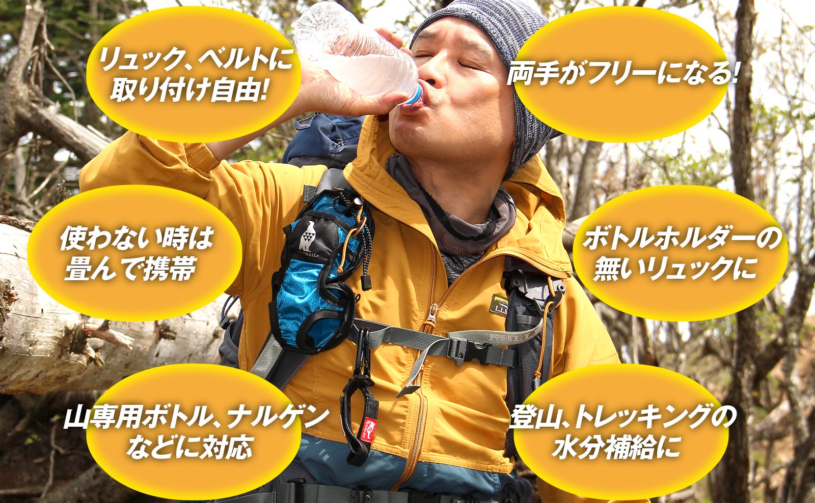 ひとつの急登を登った時。長い階段を登り終えた時。ひと山超えた瞬間にのどの渇きをいやしたいと思うことがよくあります。そんなとき、リュックを降ろしてペットボトルや水筒を取り出す余裕は無いですよね。