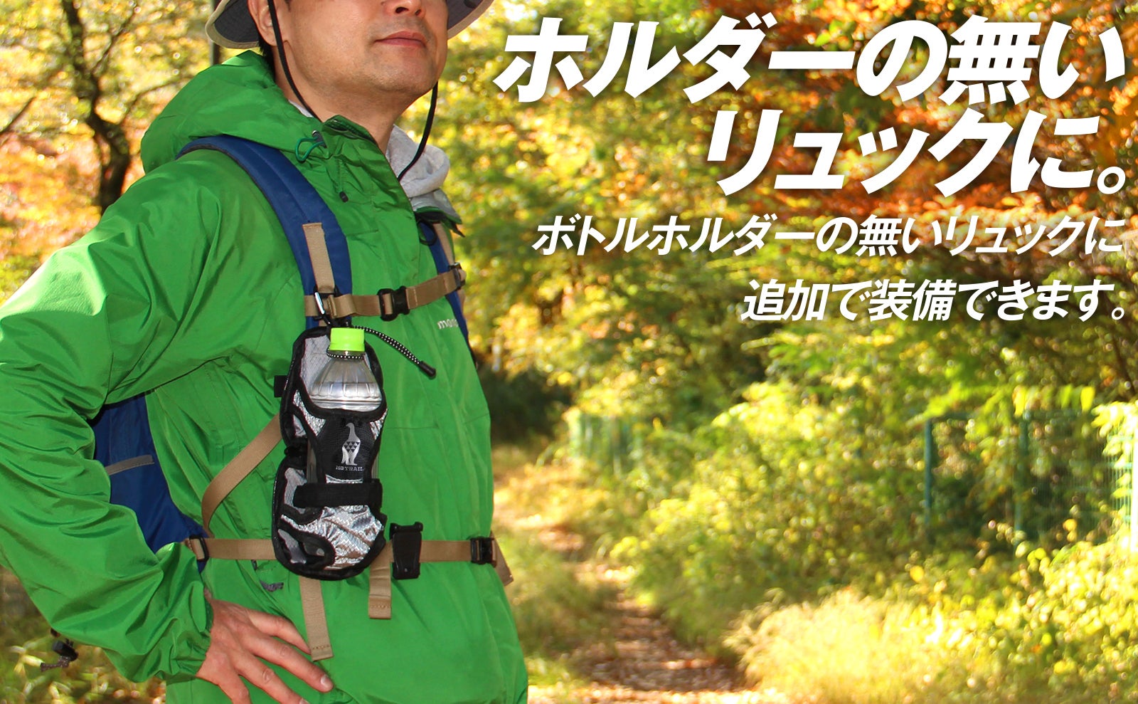 ホルダーを装着することで、ボトルホルダーの無い小容量のリュックにもご使用いただけます。お手持ちのリュックの活用範囲が広がりますよ。