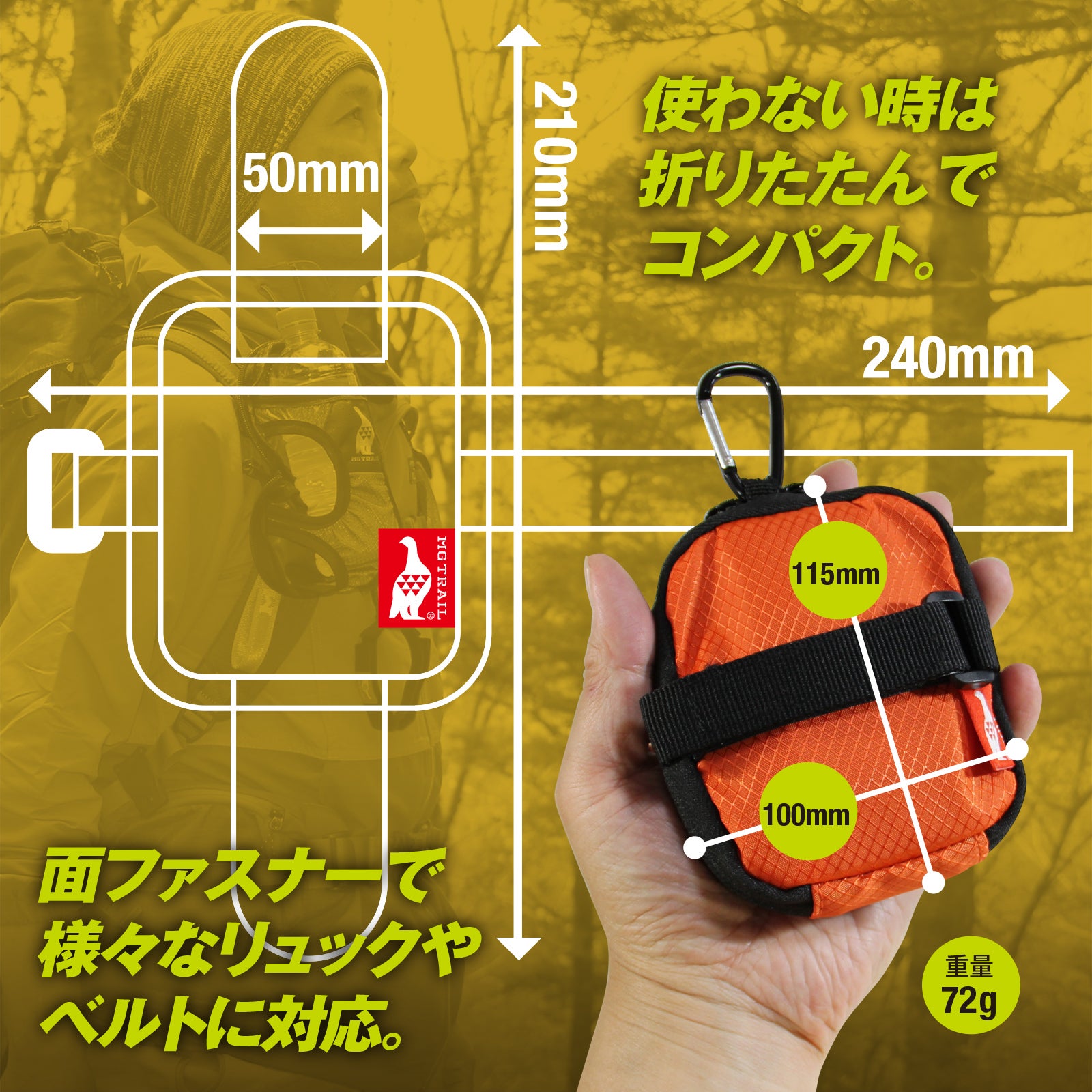 「MG TRAIL(エムジートレイル)」ではキャンプ、ツーリング、登山で“あったらいいなっ!”をコンセプトに使えるアイテムを開発、製品化を行っています。代表宮澤がアウトドアで使いながら、創意工夫を加え、製品を改良し育てております。