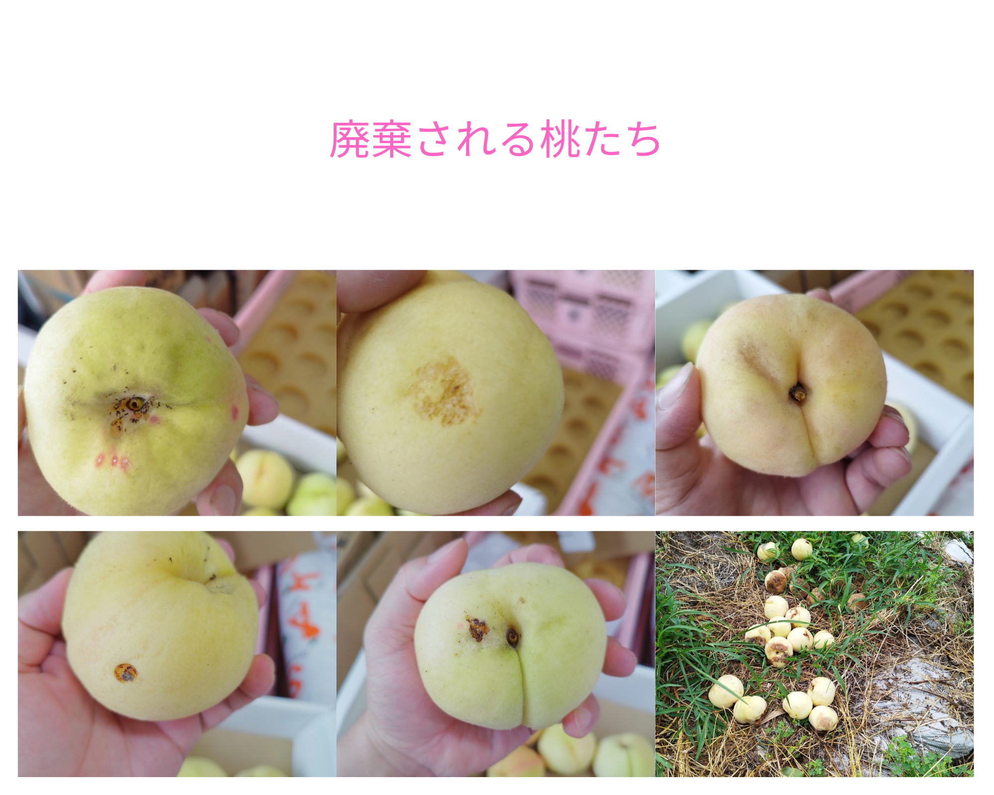 規格外と言っても、パッと見ためではわかりずらく、虫食い、変形、小玉、枝あたり等で自宅で食べる分には全く気になりません。しかし、岡山白桃の高品質を維持するには、廃棄せざるを得ない桃が沢山出てしまいました。毎日、畑へ廃棄するのも辛く、涙が出る日々が続いておりました。