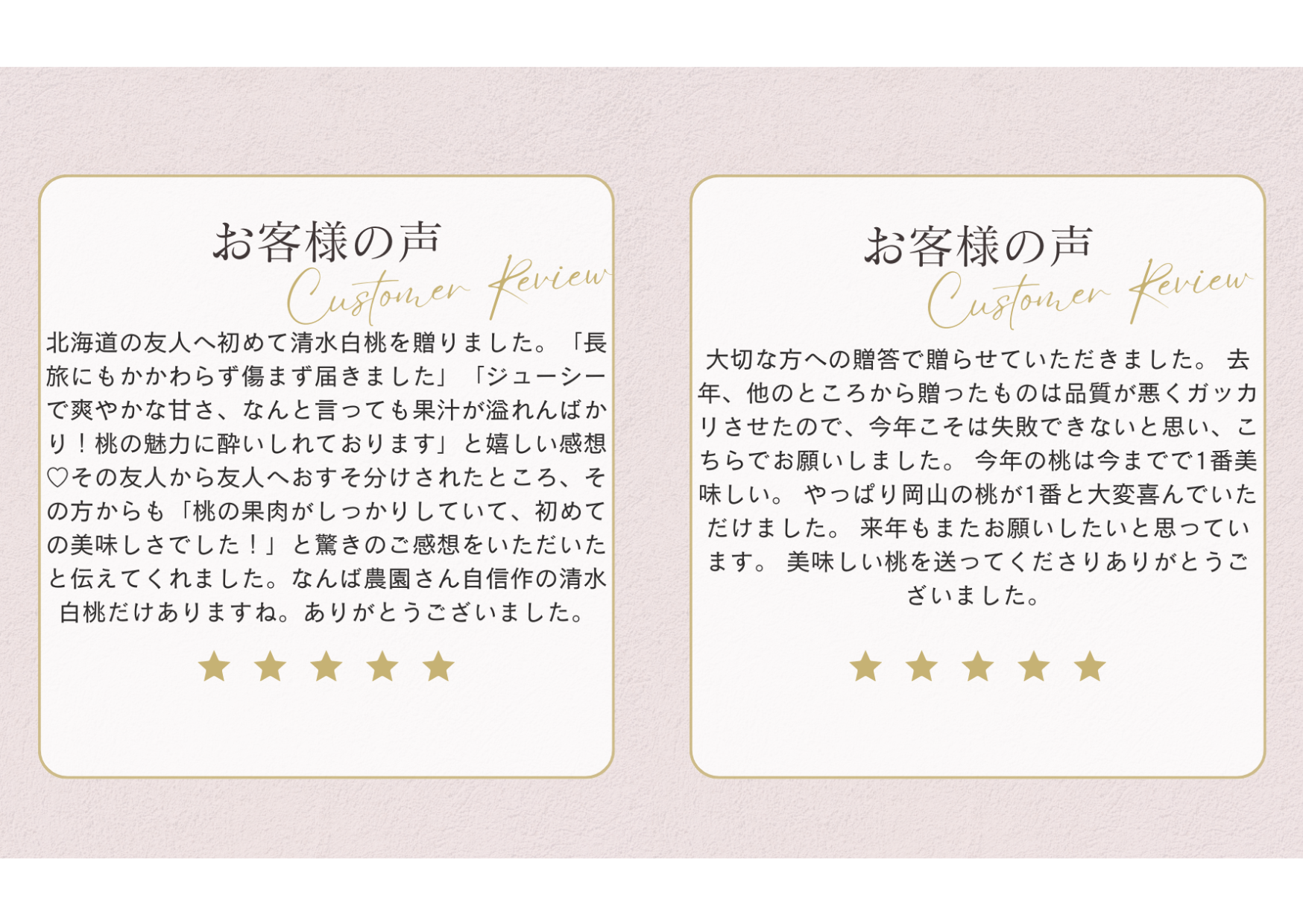 岡山白桃は高品質で有名です。その中でも当園は機械も入らない急斜面で桃を栽培している為、水はけが抜群によく、糖度も高い桃が毎年安定してできておりました。