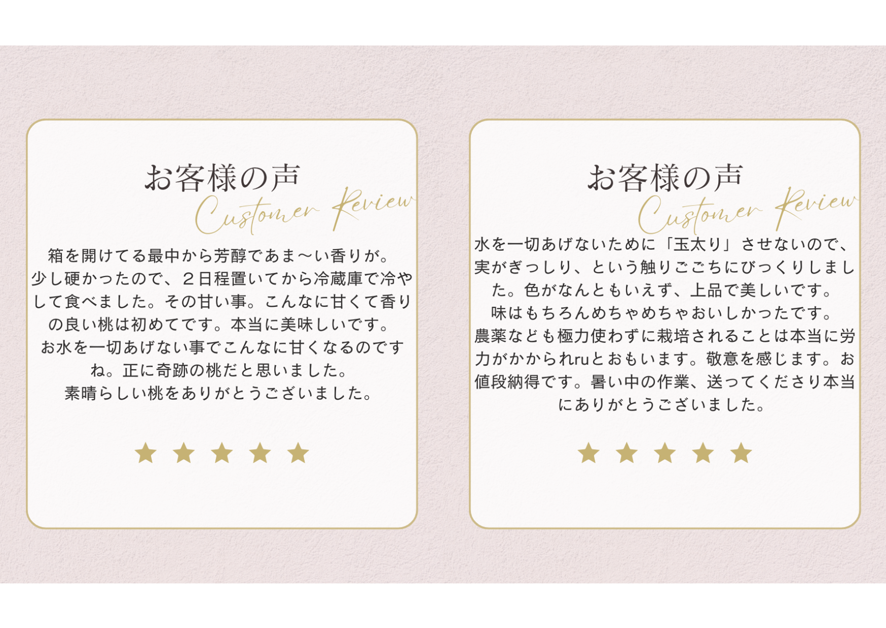 仮に、薬品や人工的なものに頼れば、それだけ農業は簡単になりますし、綺麗な実ができます。でも、安心安全な食べ物であるかは疑問が残りますよね。小さいお子様にも安心して召し上がっていただきたいので、できるだけ自然に近い農業をおこなっています。きっと祖父も私に、安心安全な桃を食べさせたかったのだと思います。