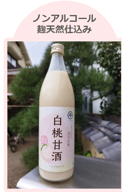 廃棄する桃を何かに使えないかと必死で考えました。ふと横を見ると、妻が毎日習慣的に甘酒を飲んでいました。当時妊娠期間中の妻は、つわりもひどく、便秘に悩まされていました。もともと妻は健康志向で甘酒を好んで飲んでいましたが、甘酒は妊婦さんにもおすすめの飲み物だそうです。