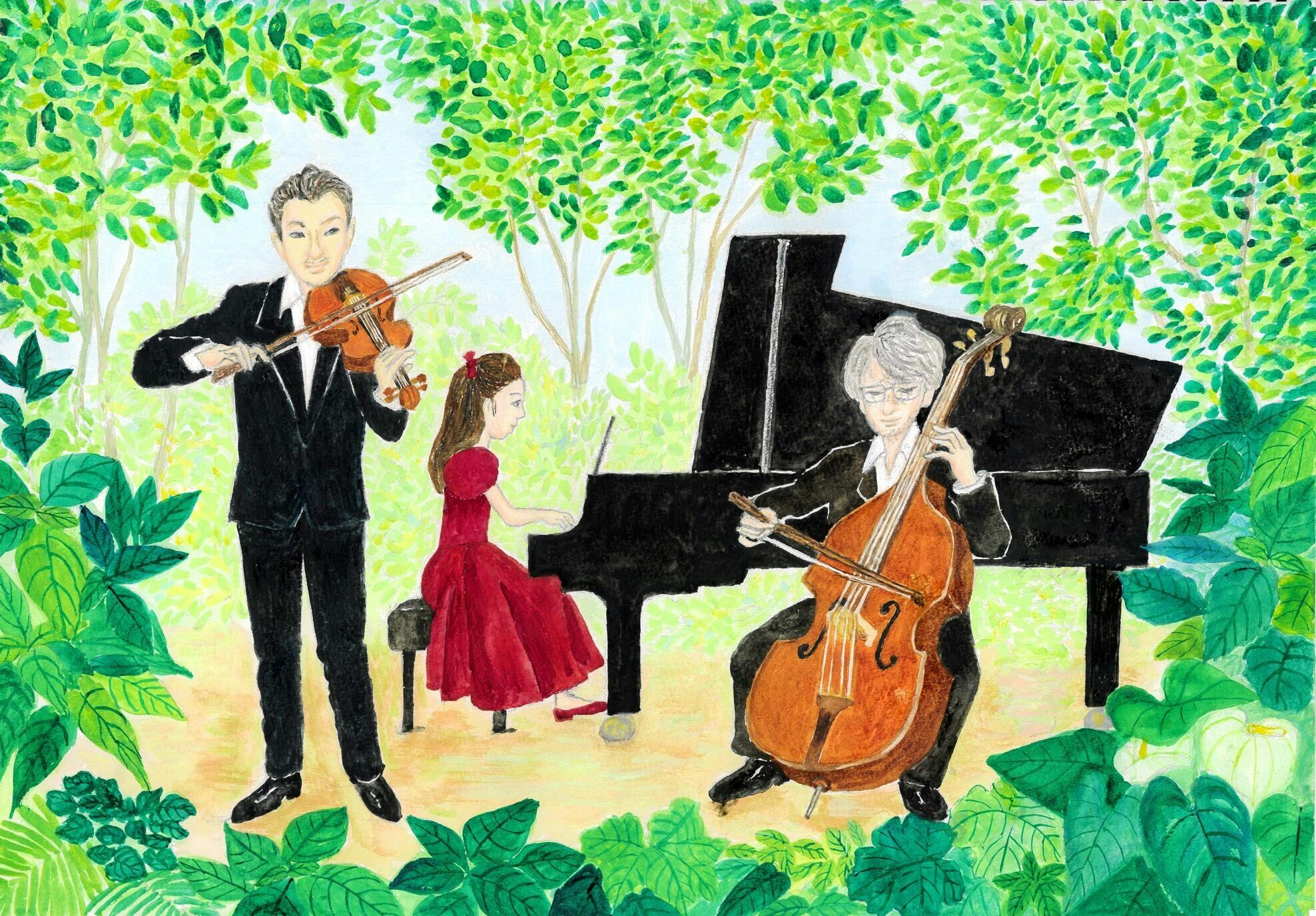 "ステージを緑でいっぱいにして森の中で弾いているような雰囲気を創りたい"という想いを聞いていました。
