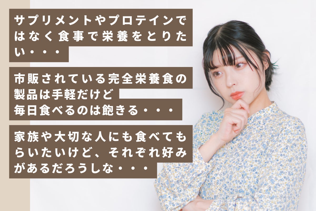 より多くの人々に気軽に健康的な食生活を提供するため、新しい形の【完全栄養食】の開発を目指します。
