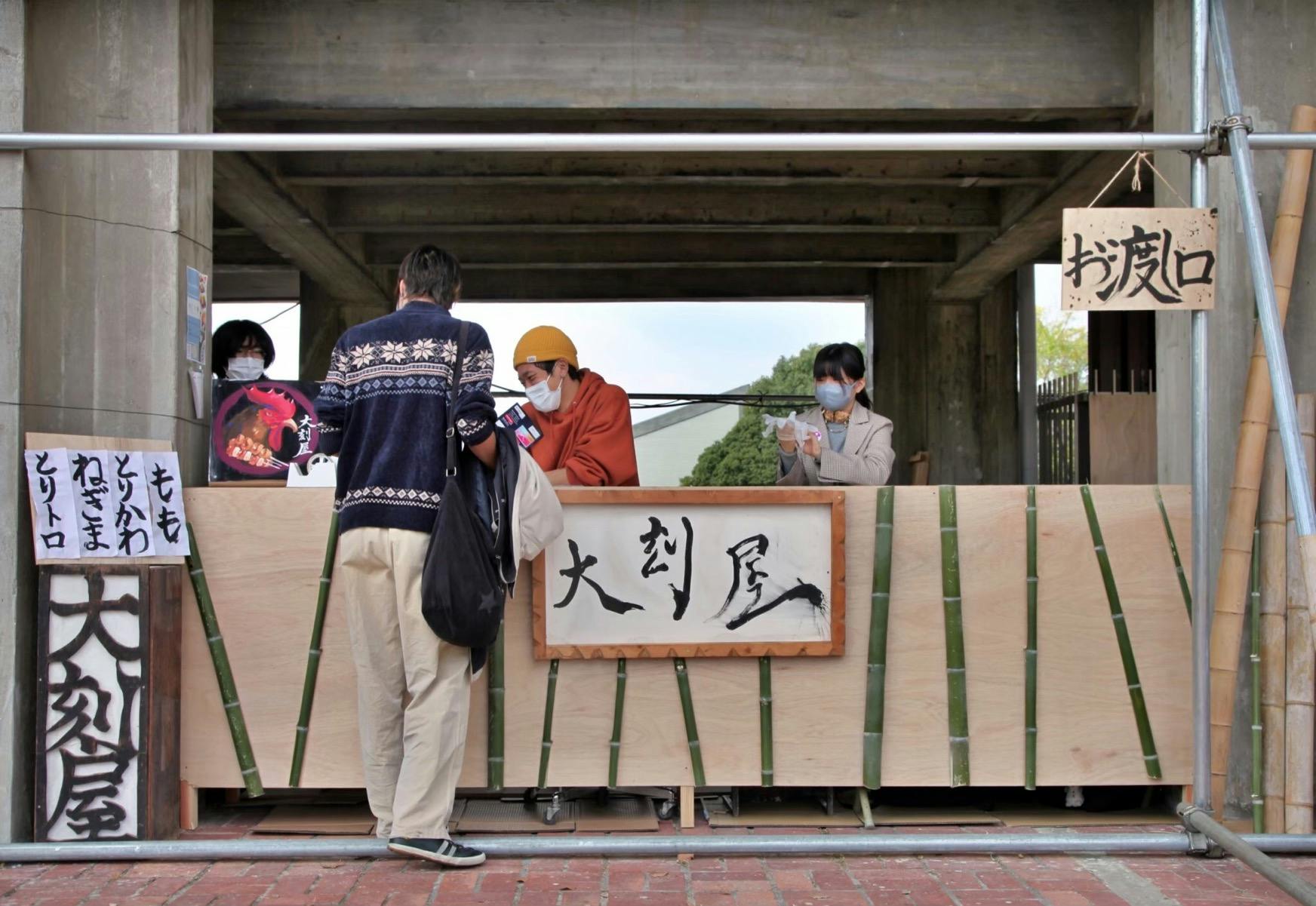 大学祭と言えば学生が運営する模擬店。愛芸祭では焼き鳥や唐揚げなど定番な店舗に加え、学生達自身が作った、お皿や湯のみなどの焼き物、アクセサリー、ポストカードといった愛知県立芸術大学だからこそできる店舗が出店しています。