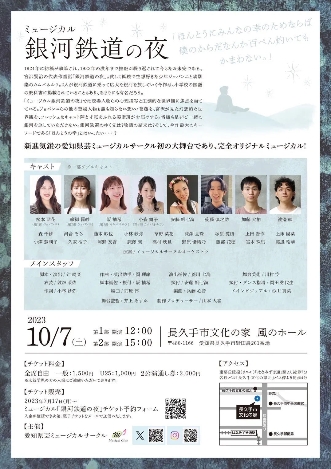愛知県立芸術大学ミュージカルサークル公演ミュージカル『銀河鉄道の夜』☆2023年10月7日(土)