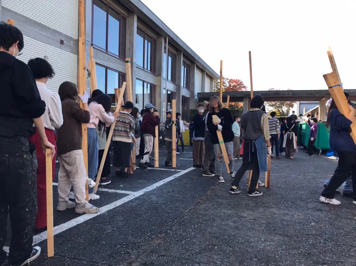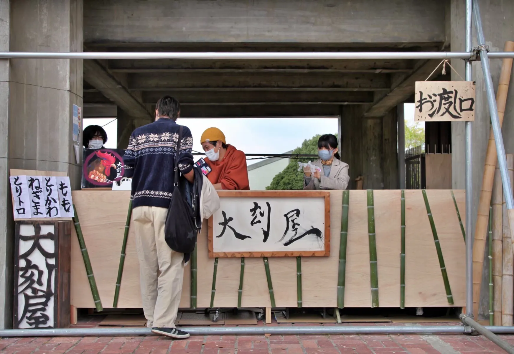 またこの店舗は、その店舗を運営する学生が設計、デザイン、建築、解体まですべて学生自身が行う文化が続いてきました。店舗に使う材は主に鉄パイプや木材です。この木材は材木屋から購入し、使えるものはその翌年も再利用していたのですが、コロナによる3年間により放置されていた木材が腐敗してしまいました。