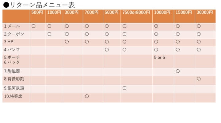 10000円(メール、クーポン、HP、パンフレット、ポーチ)