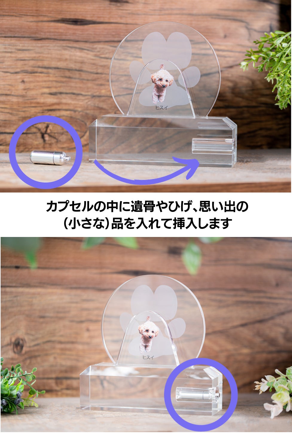 サイドにはカプセル(筒)に遺骨や歯、髭などを入れられる場所も用意。