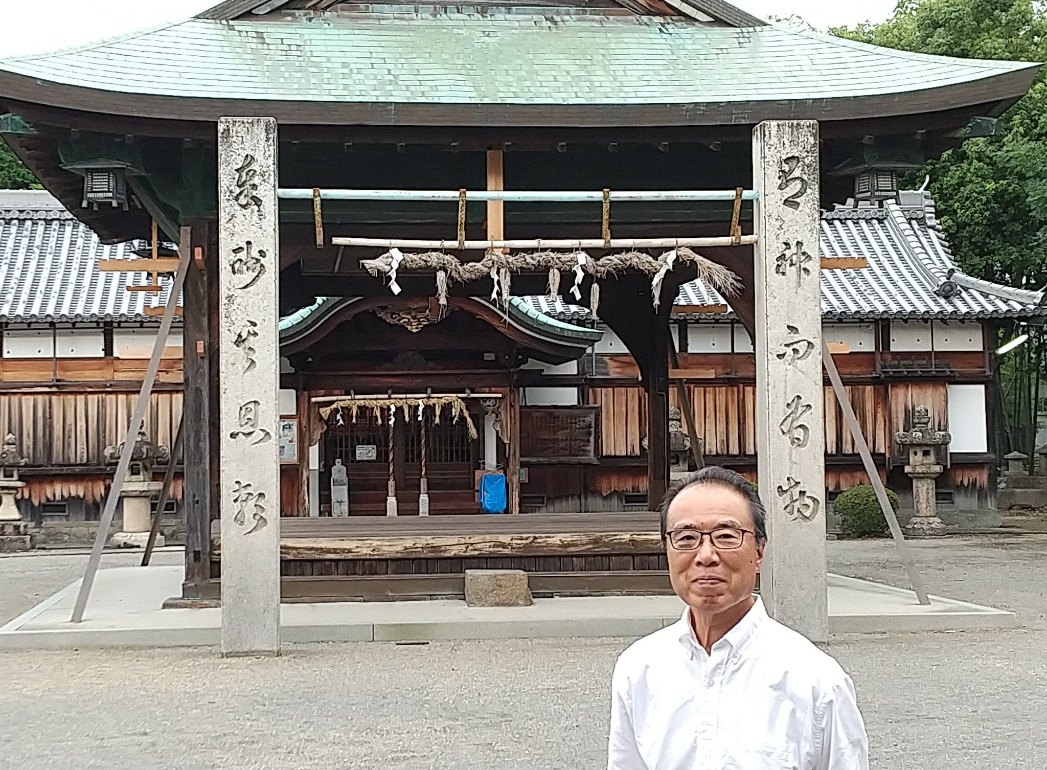 舞殿を備えた神社は格別です。だんじり祭には子ども巫女が神楽を奉納し、あるときは能やミニコンサートの舞台になり、観光案内のボランティアさんが由緒の紙芝居を披露し、また真夏の参拝のかたが屋根の下に腰を下ろして涼を取るなど、この舞殿があることで人々が集い、村の氏神鎮守社として人々と神社とをつなぐ大切な接点となっているのです。