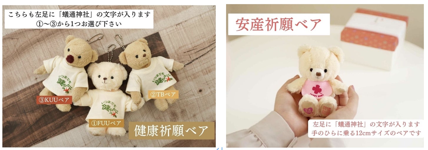 泉佐野市に本社がある株式会社プティルウ様とのコラボテディベアです。蟻通神社で祈祷させていただいており Bear(ベア)は「産む」、「結ぶ」、「耐える」といった言葉の意味をもち、 母性愛が強いベアは、縁起の良い動物とされています。