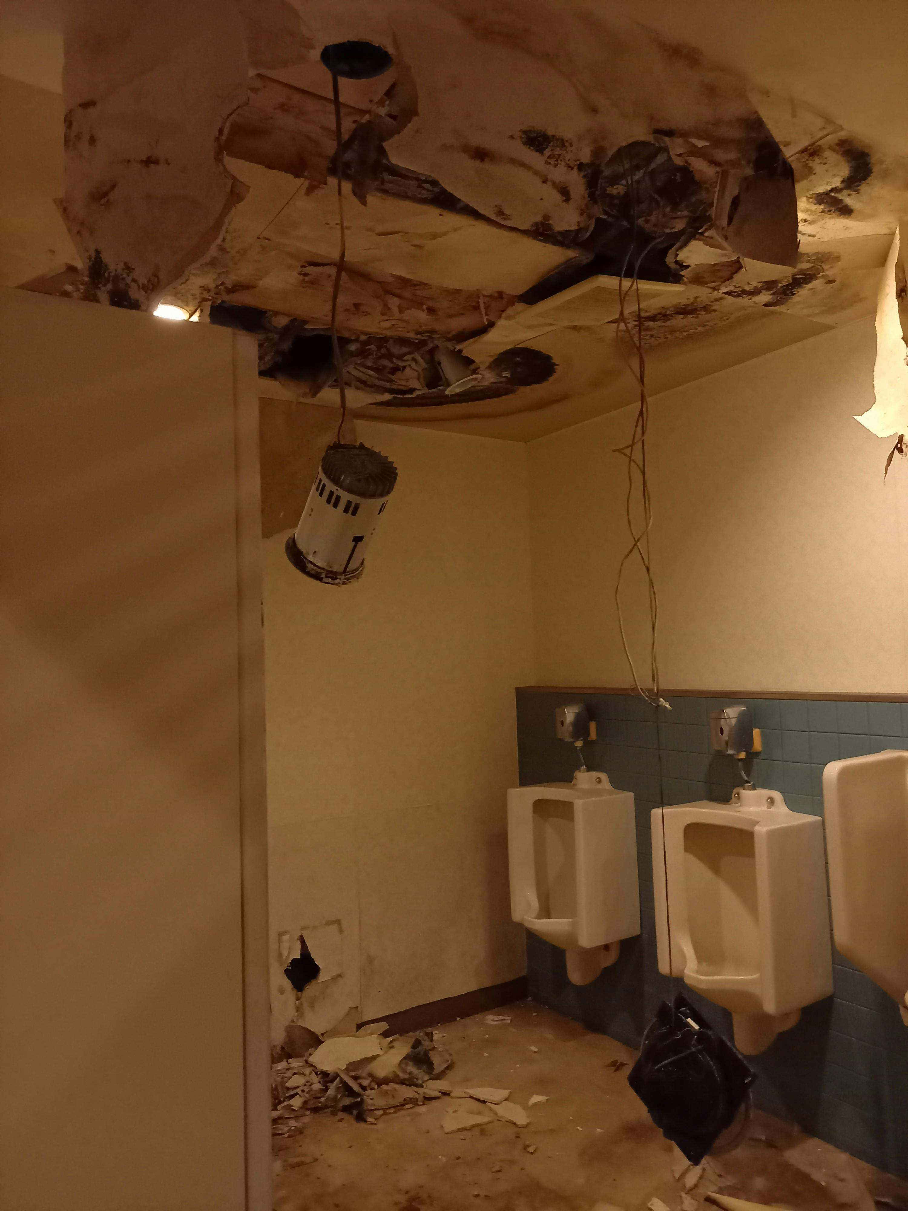 元々老朽化が進んでいて、雨漏りもあったのですが、7月の大雨のあと、出勤するとついに天井が落ちていました。