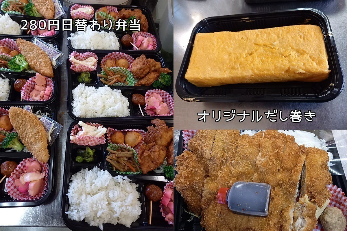 当店の日替わり弁当 280円(税込)では、毎日30食ほど限定で販売させていただいております