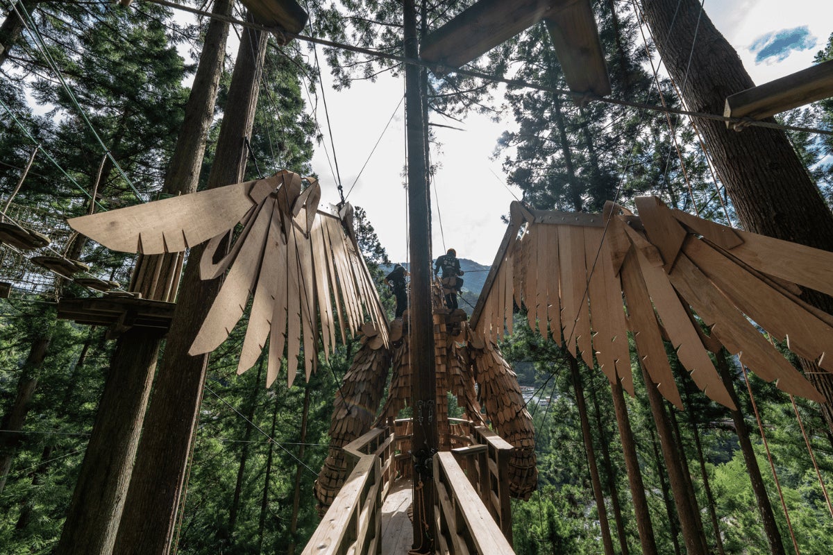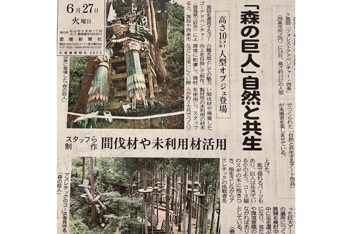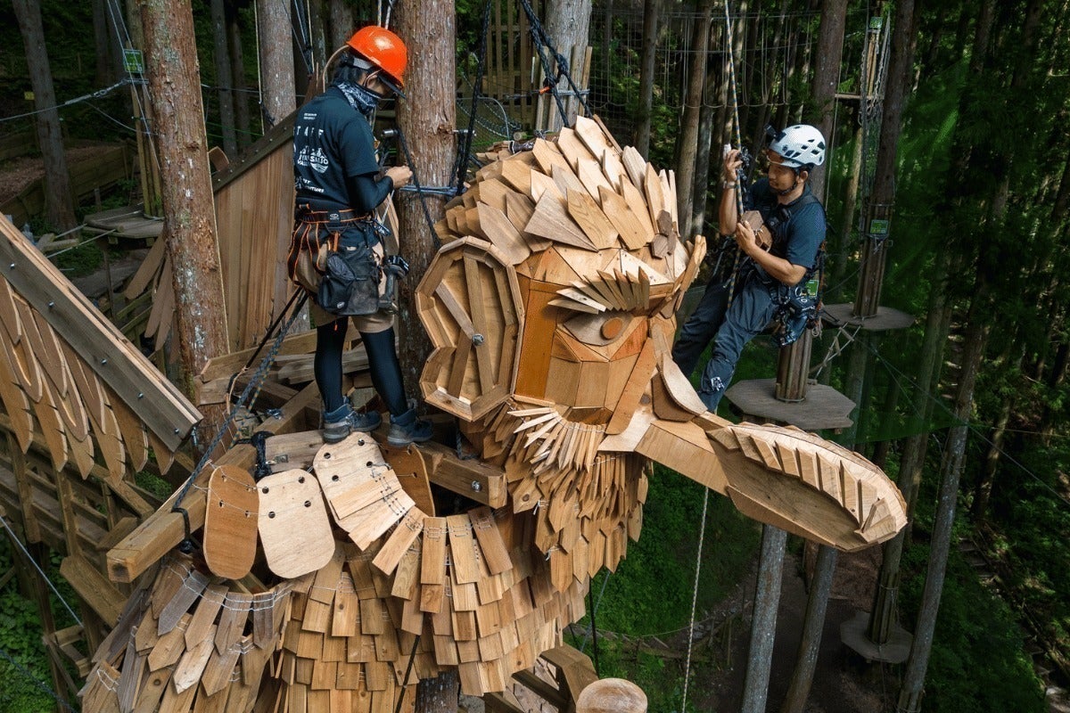現在は2021年に徳島県三好市のフォレストアドベンチャー祖谷に「15m級の森の巨人1号」(2023年1号改としてリニューアル)、2023年に愛媛県西条市のフォレストアドベンチャー西条に隣接する森の中に「10m級森の巨人2号」をつくりました。