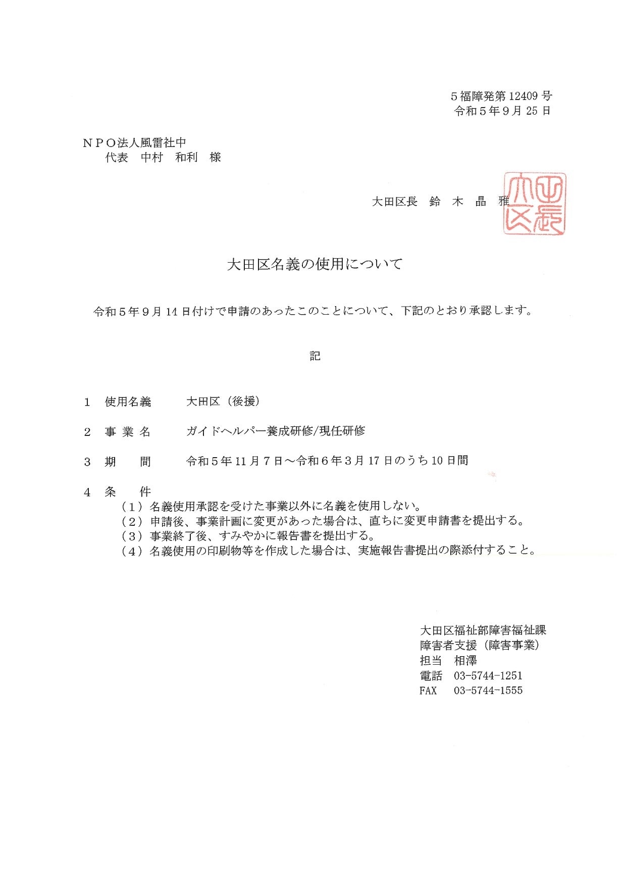 • ガイドヘルパー養成研修/ガイドヘルパー現任研修が大田区に後援をいただきましたこれまた金銭面などで優遇は無いのですが、図書館などの公共施設にチラシを置いていただける確率が上がるので、より多くの方に知っていただけるよう更に広報に力を入れていきます。 もっと見る