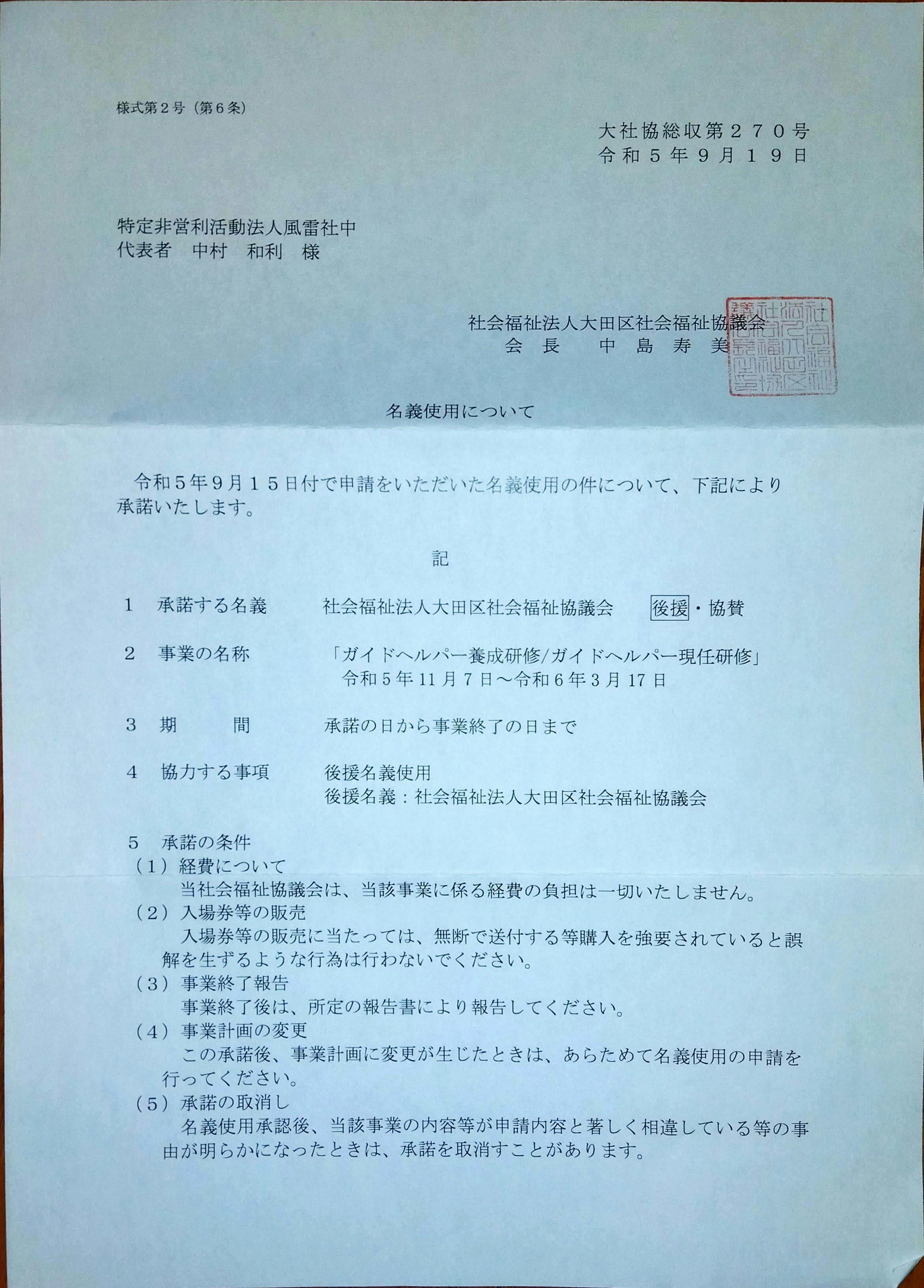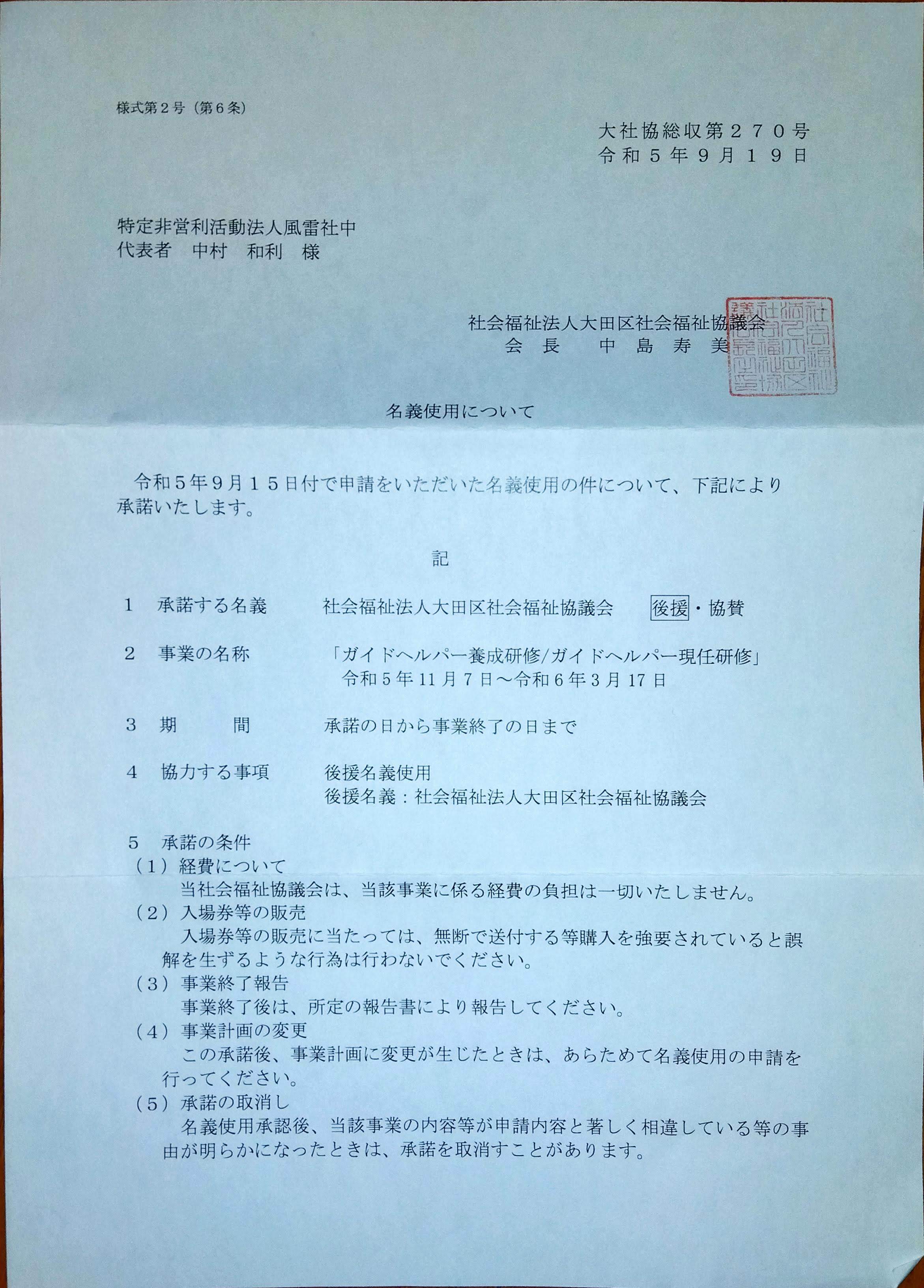 大田区社会福祉協議会から後援をいただきました。