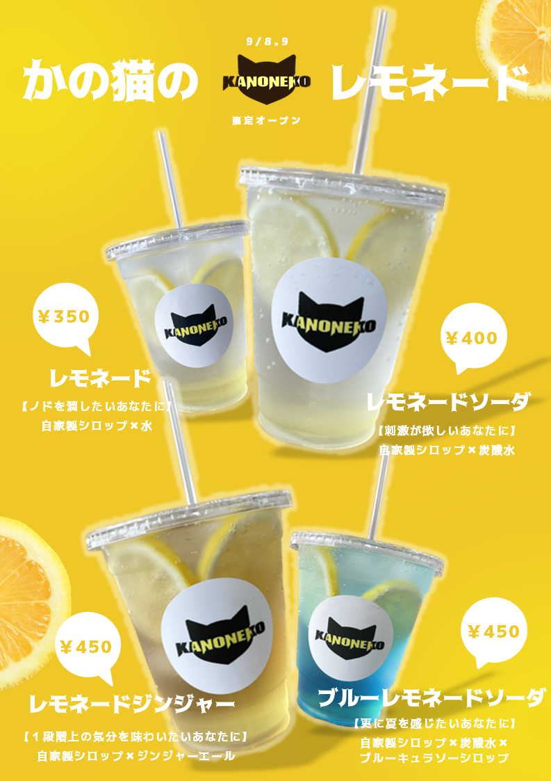 レモネード・レモネードソーダ・レモネードジンジャー・ブルーレモネードの4種類を予定しています。