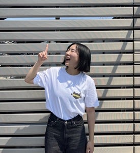 デザインは白Tシャツがベースで左胸にかの猫のロゴを入れています。カラーは写真の通りです。