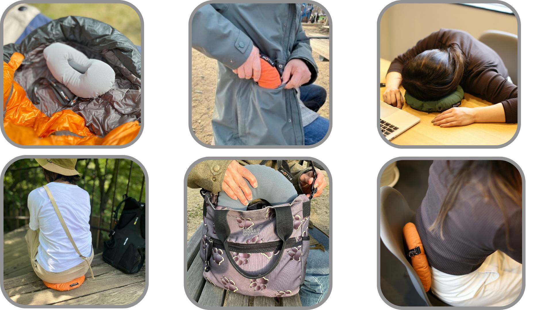 特にオススメは右下のように腰当てクッションとしてご使用いただくこと。