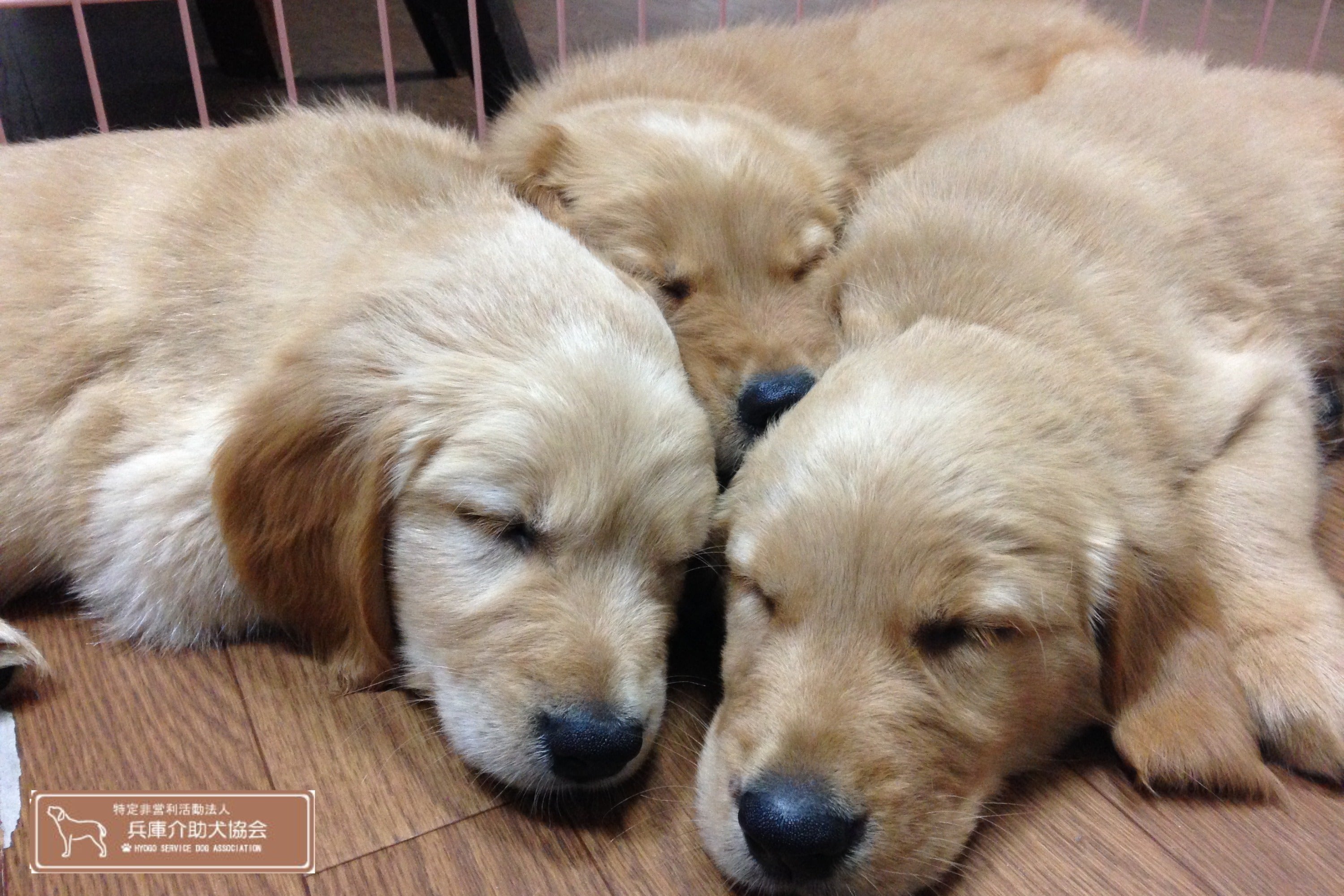 介助犬育成の始まりは子犬(パピー)の導入です。当会では繁殖に取り組むための資金や環境や人手が足りていないため、他の育成事業者やラブラドールレトリバーやゴールデンレトリバーのブリーダー等から購入して子犬を導入しています。介助犬候補の子犬は、生後60日頃から約1年間、ご自宅で飼育して頂くパピーウォーカーボランティアさんに預けられて、介助犬にとって必要な社会性を身につけていきます。そして1才を過ぎた頃から、介助犬になるための本格的な訓練を始めます。