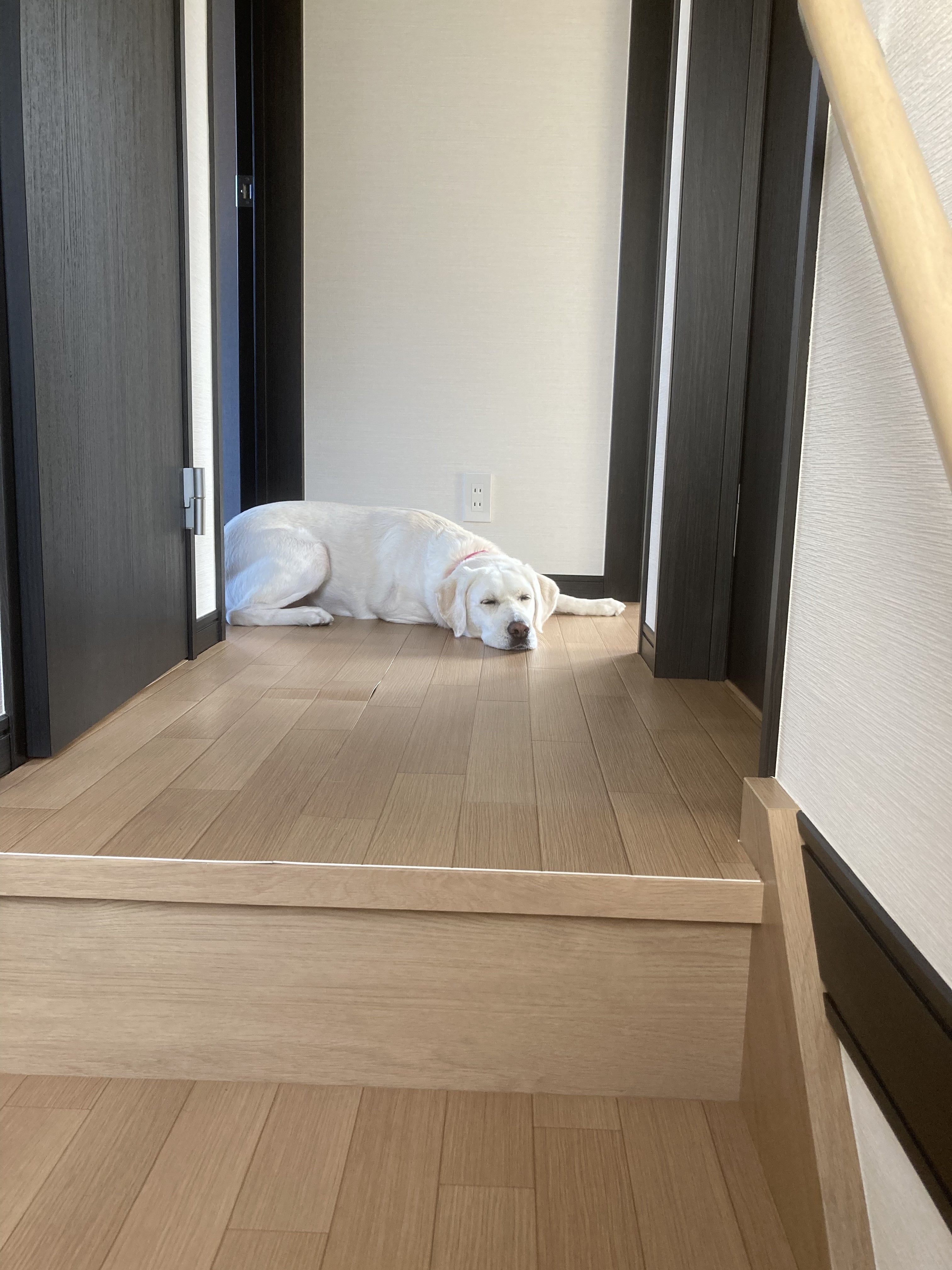 訓練犬も一緒に2階へ。